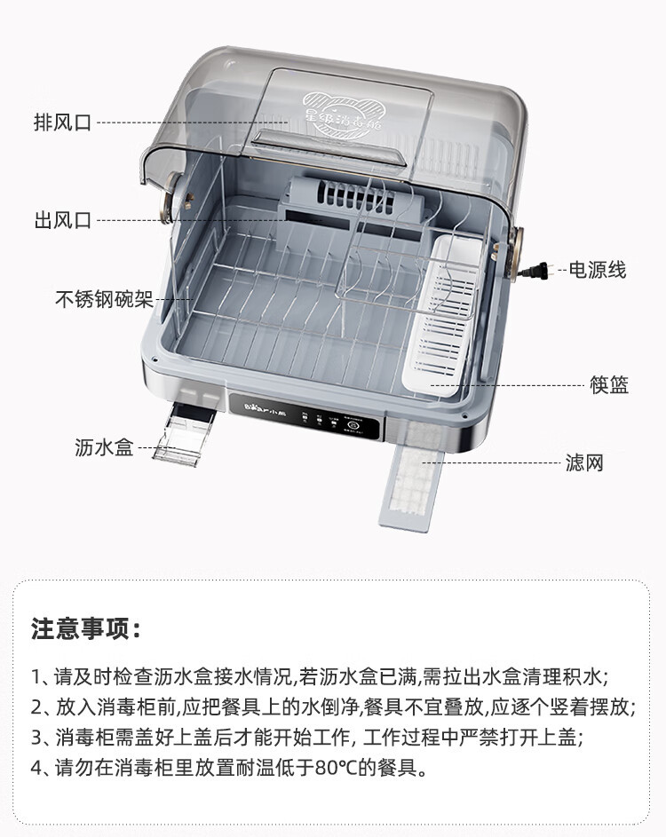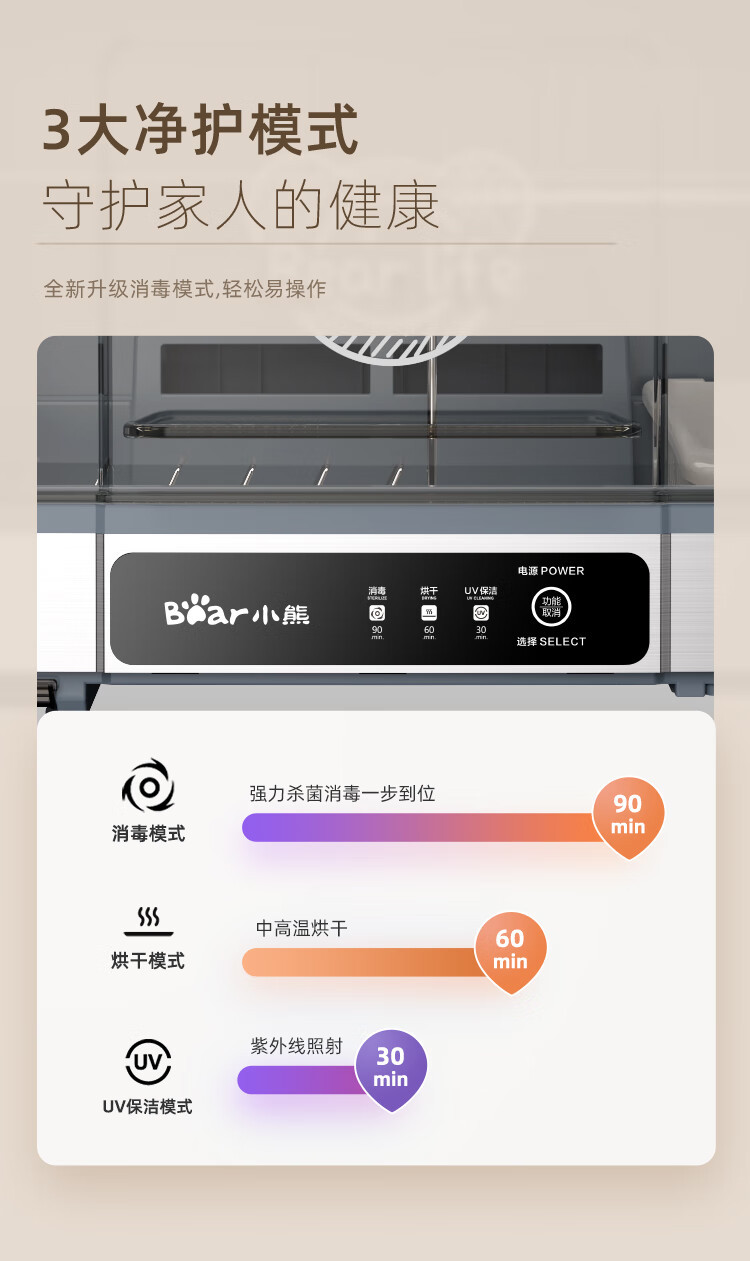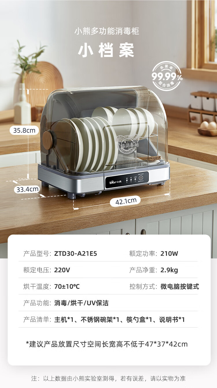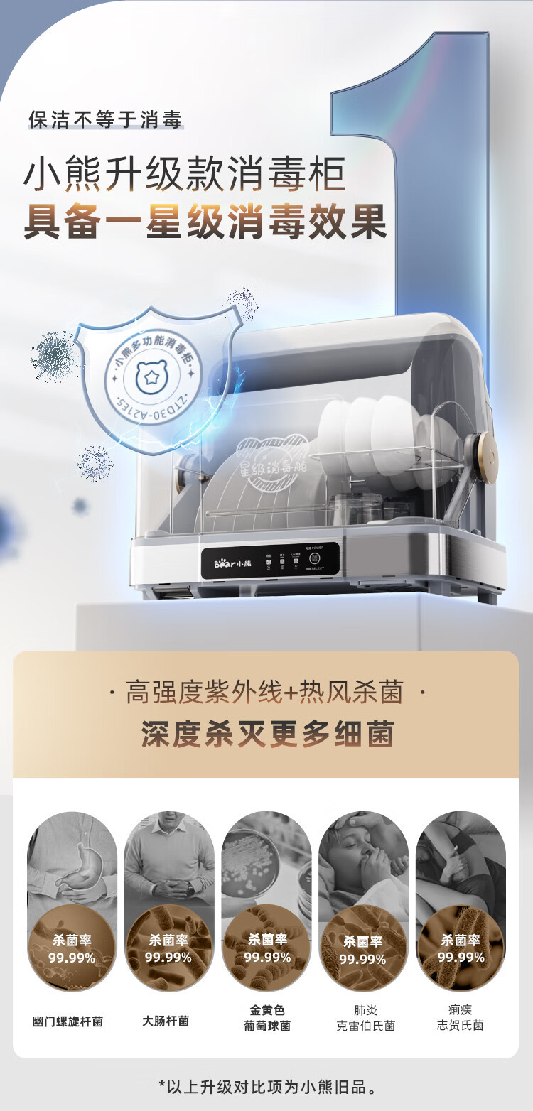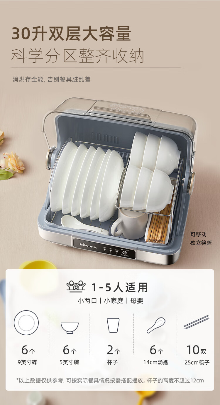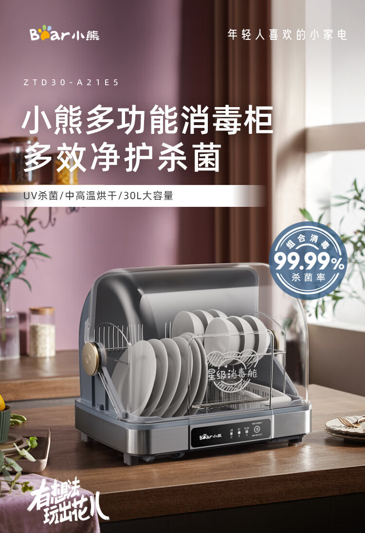Многофункциональный стерилизационный шкаф Bear ZTD30-A21E5 для дома, УФ-стерилизация и сушка горячим воздухом