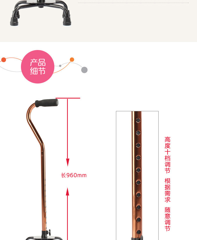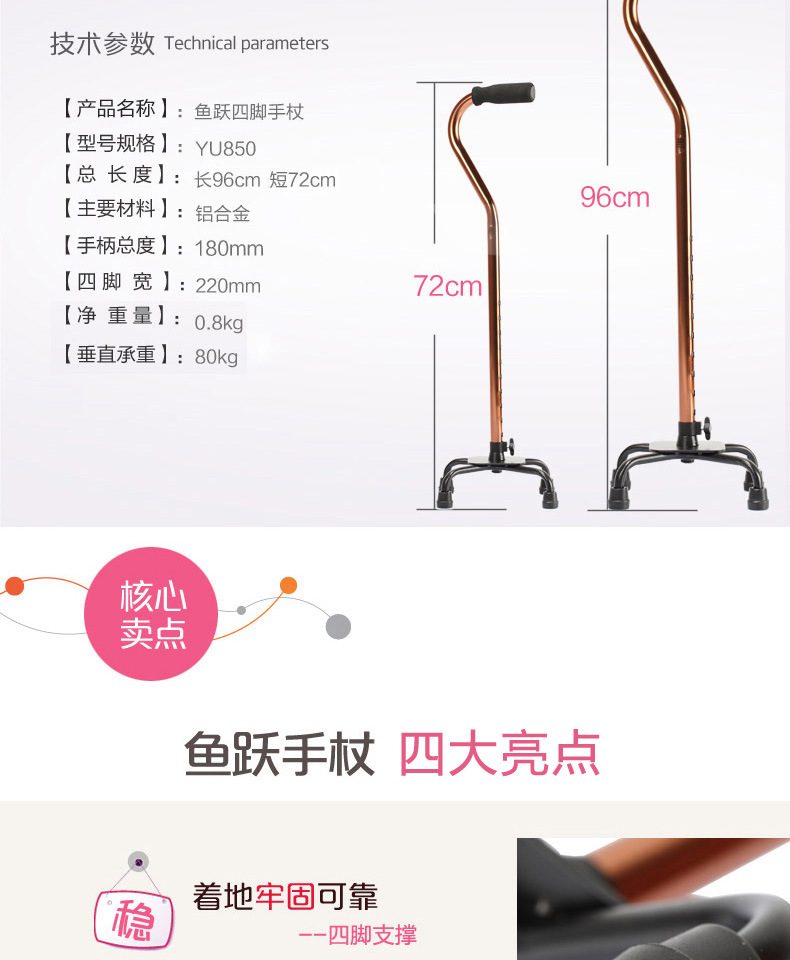 Yuyue мобильное вспомогательное оборудование для пациентов тростник легкий алюминиевый сплав четырехугольный нескользящий выдвижной тростник YU8501 шт.
