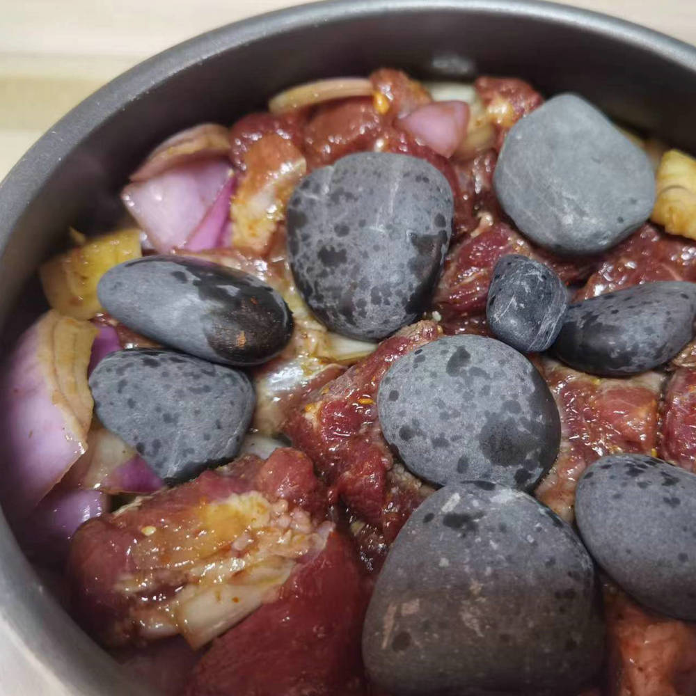 使用石头的注意事项:这个石头烧之前,先用水煮一下,让石头内外预热一下,这样石头不易碎裂了!烧的时候也要用火小一点,因为石头传热慢,储热时间长的特点,不可急火烧。