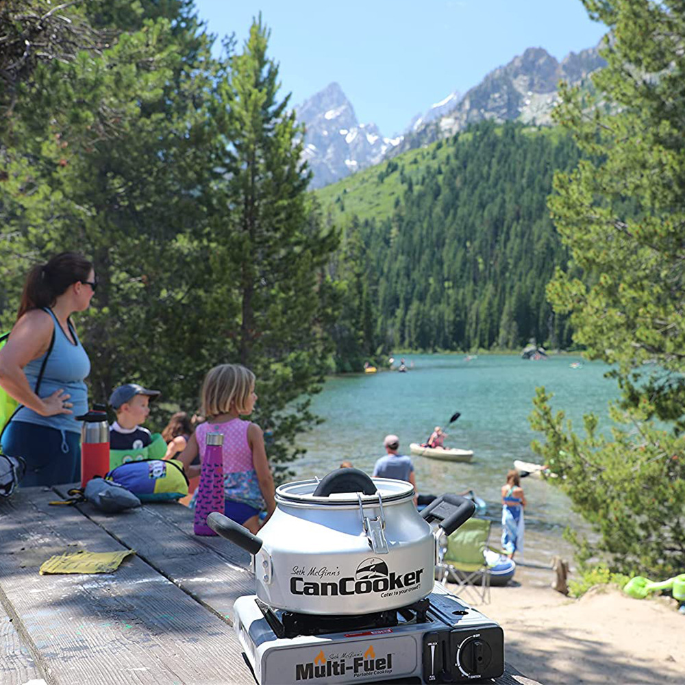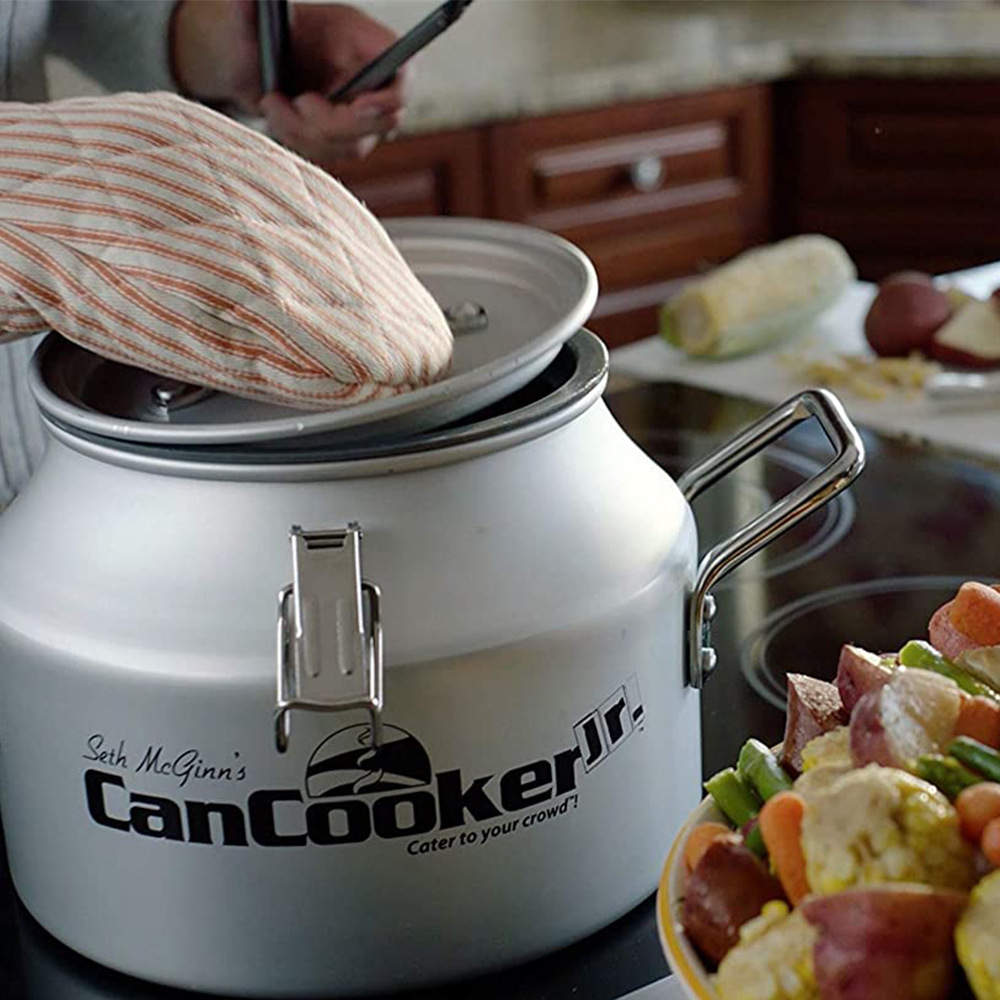 产品介绍:本产品为户外打猎锅,适合户外活动使用,出口美国,质量严格把控。四大优势:容量大,轻质便携,易清洗, 易煮熟。材质使用铝合金,比较轻,携带方便。可以吊起来煮烤食物, 可用燃气,明火,盖口有密封圈,会形成内部压力,使食物快熟,户外家用首选.