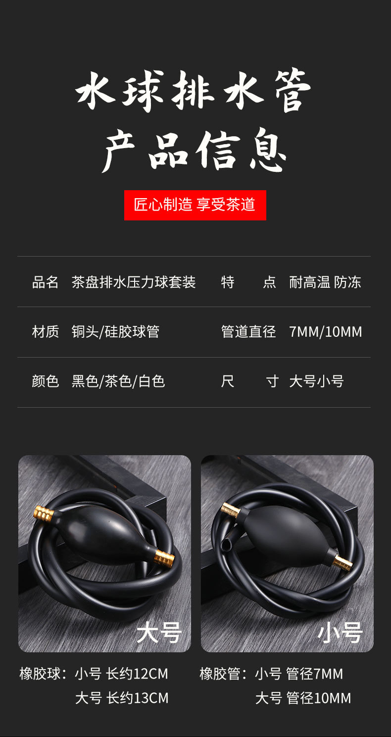 Трубка для слива чайного подноса из силикона с двойной медной головкой, водяной шар, антифриз, трубка для чая, аксессуары для чайного набора