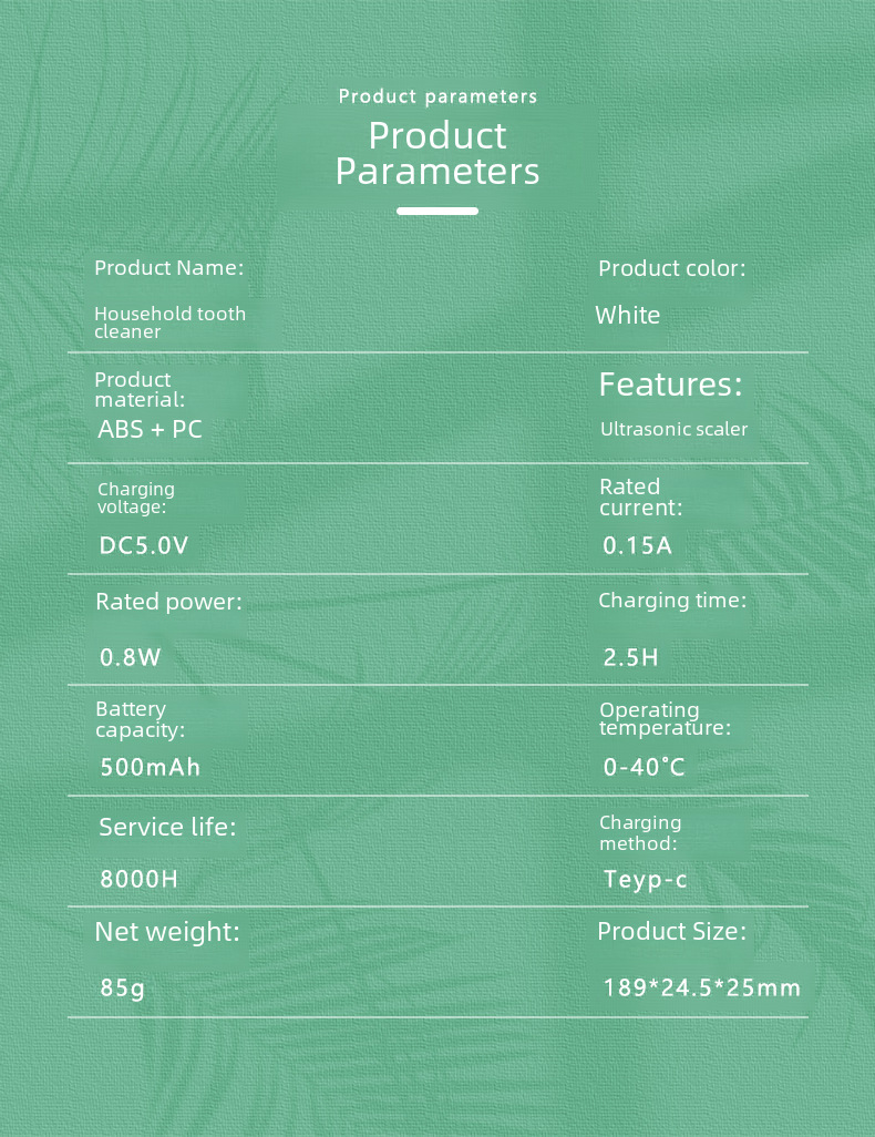 - Ultrasonic Electric Tooth Cleaner:This product is an ultrasonic electric tooth cleaner, designed to effectively remove plaque and teeth stains, promoting oral health.