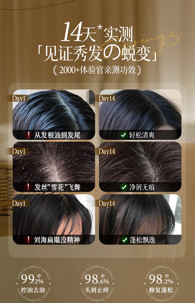 Эффективность Anti-dandruff and antipruritic, deep repair, Refreshing oil control, Scalp Soothing