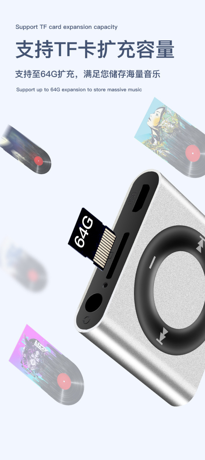 2023 новый металлический MP3 плеер простой стиль Карточный mp3 для активного отдыха и прослушивания Walkman