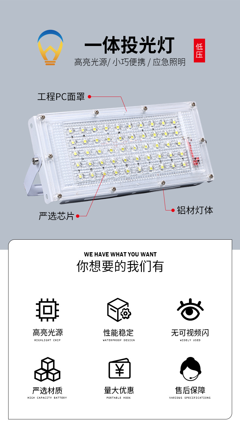 Оптовая интегрированная светодиодная лампа для холодного хранения, высокая яркость, антибликовая, для ночного рынка, уличного киоска, наружное освещение, низковольтный прожектор