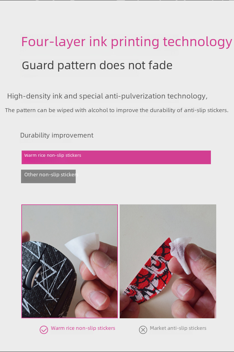 - Durable Strap Design:The durable strap design ensures the decals stay in place, providing a long-lasting solution for your mouse anti-slip needs.