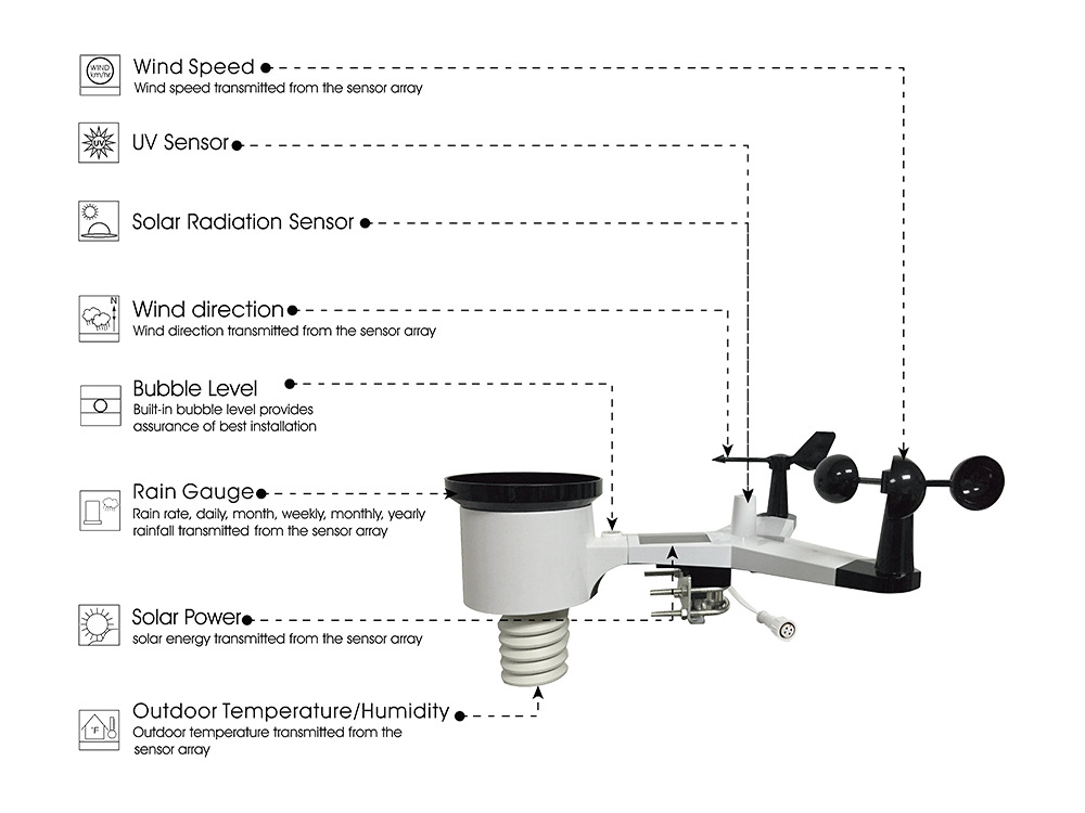 要素:风速 风向 雨量 光照 UVI 温度 湿度 气压