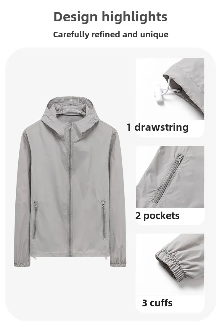 - Lightweight Summer Fabric : Crafted from ice silk, this jacket offers a thin yet breathable design perfect for summer wear, ensuring comfort during outdoor activities.