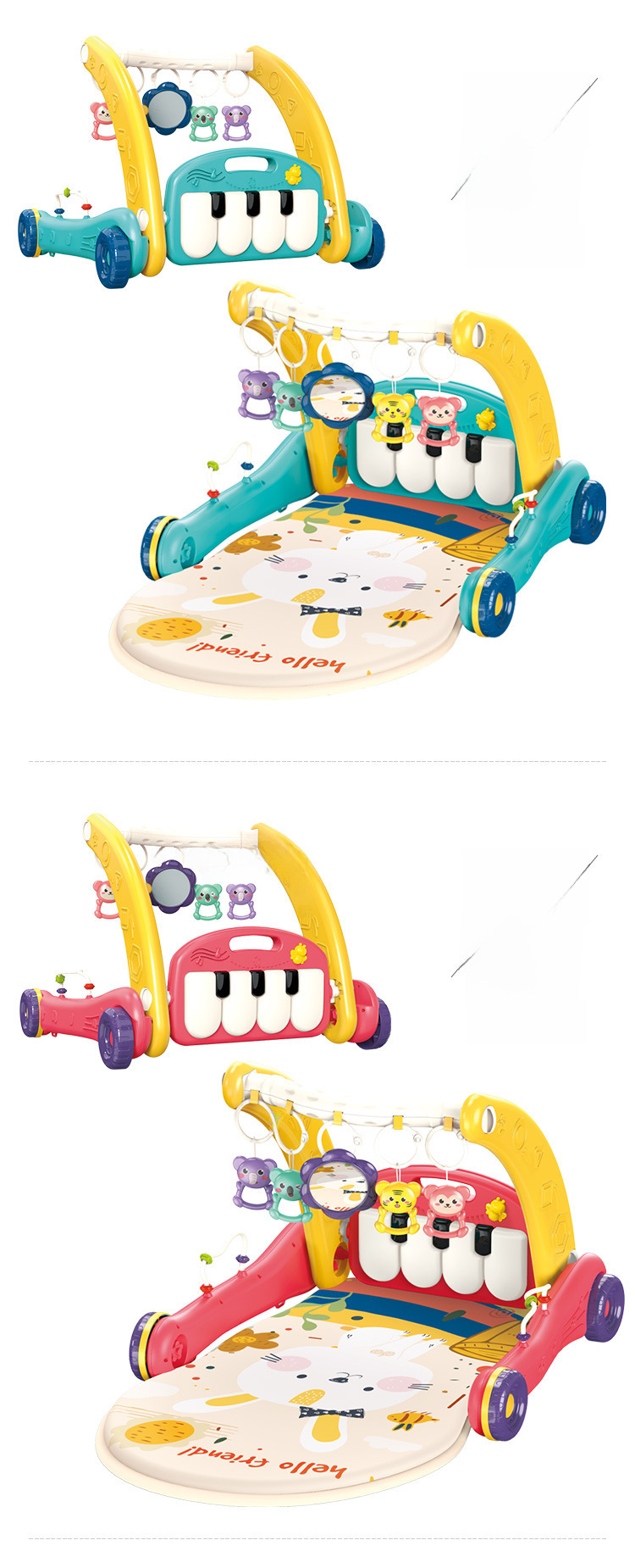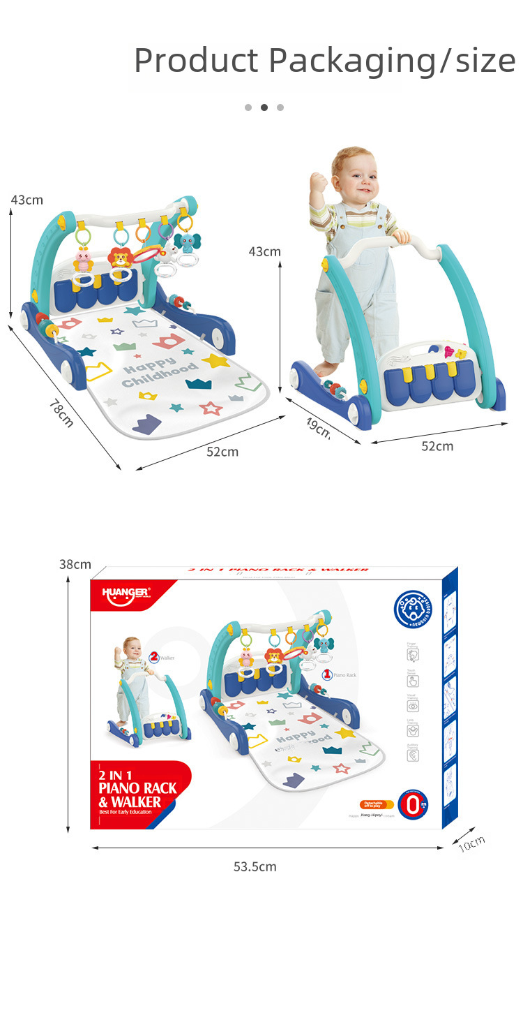 Лучший продаваемый детский 2-в-1 ходунки-коляска, музыкальная игрушка-пианино для новорожденных, фитнес-мат для ползания