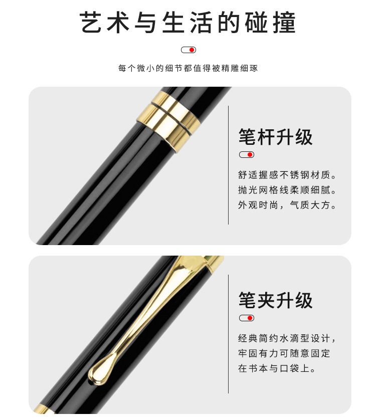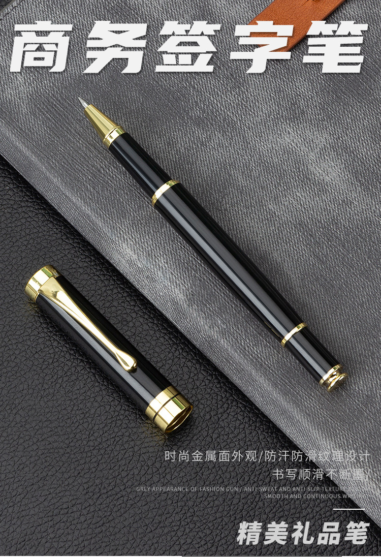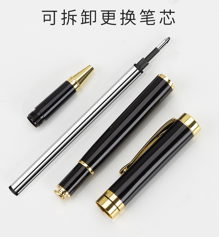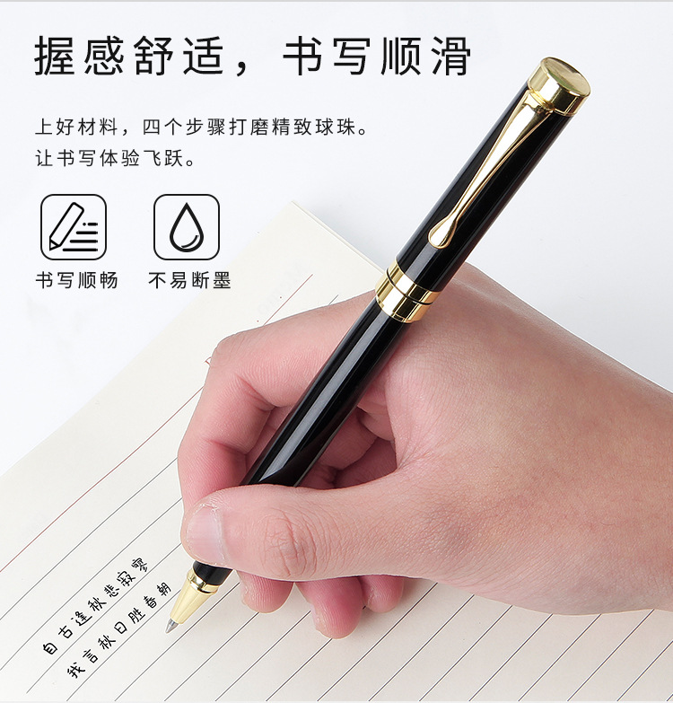 Черная печатная логотипная гравировка стильная бизнес-рекламная подарочная стальная ручка с металлическим корпусом и индивидуальной подписью