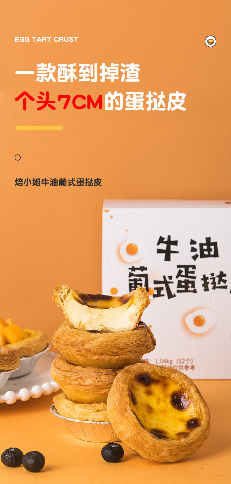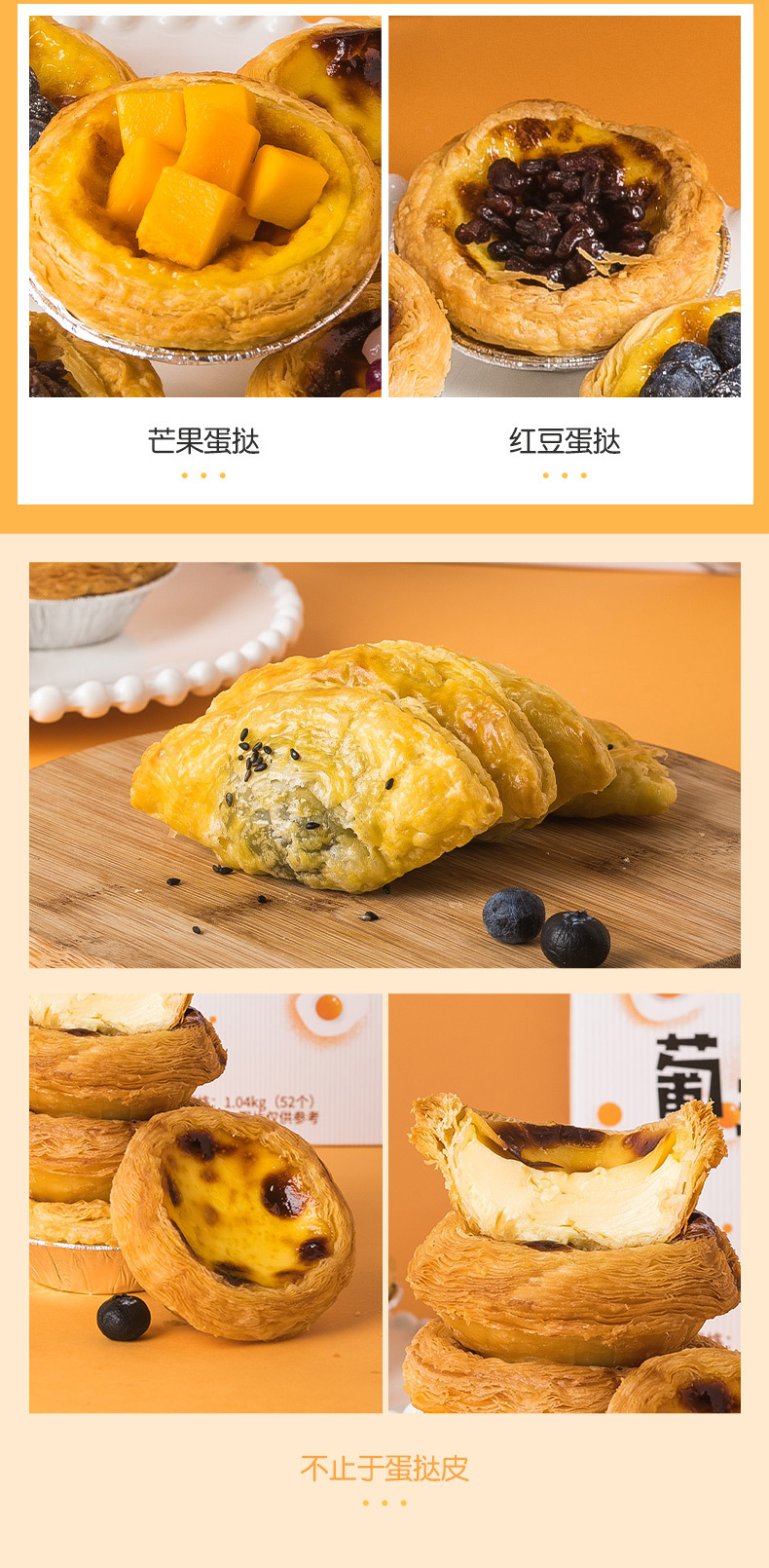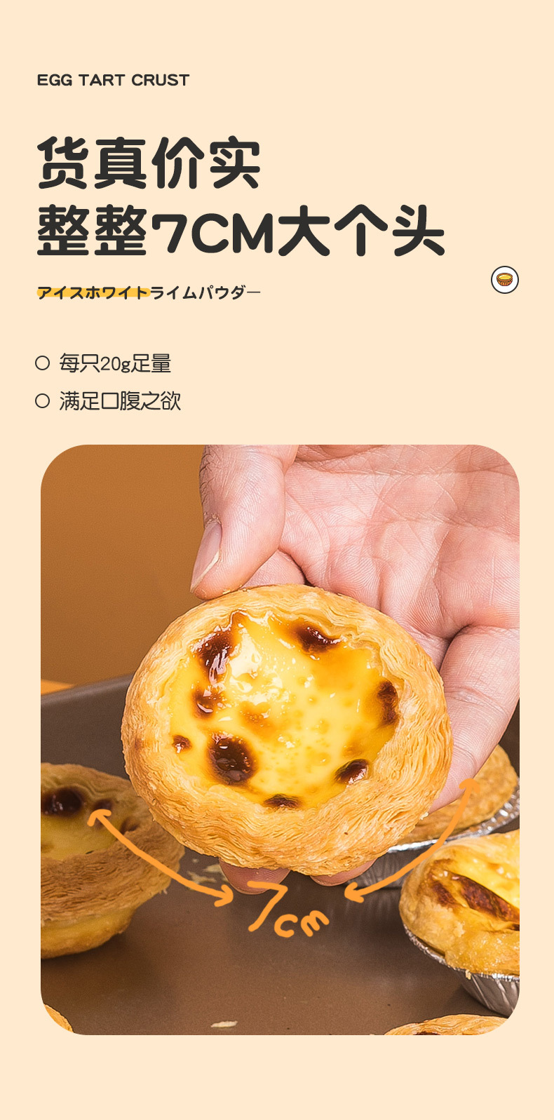 ![]() | Small size 10 g/piece egg tart skin 24 PCs/box | ¥5.2 / ≈ 63 ₽ | 2106 | 5233092506786 | |