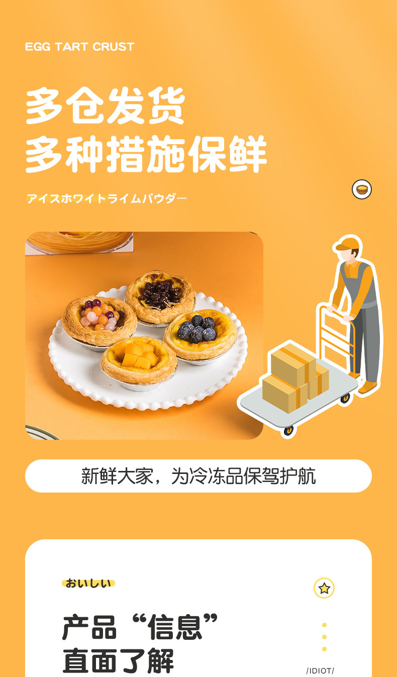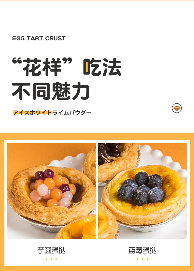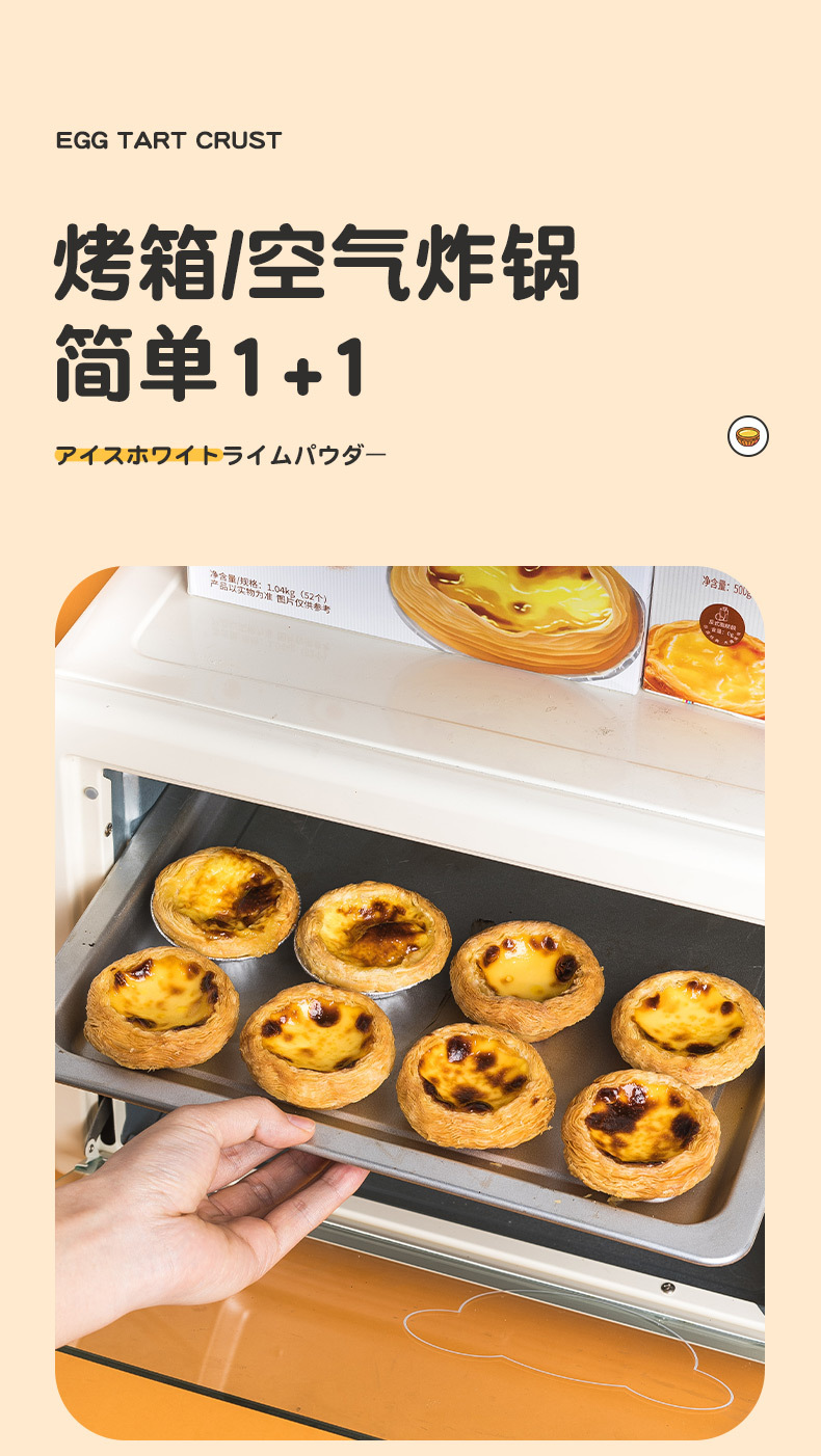 ![]() | Small size 10 g/piece egg tart skin 24 PCs/box | ¥5.2 / ≈ 63 ₽ | 2106 | 5233092506786 | |