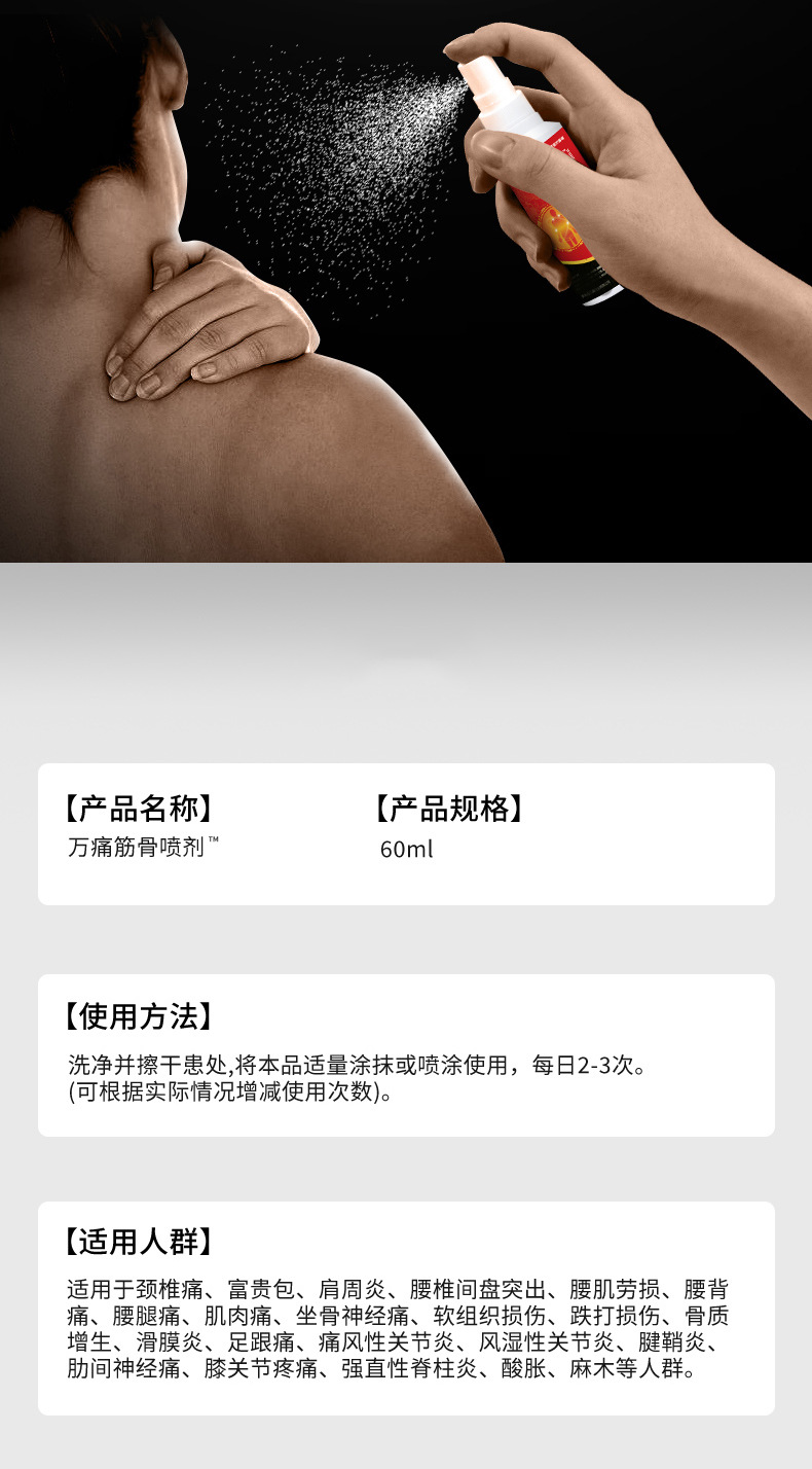 ![]() | Wan tong muscle & joint relief spray | 001 | ¥2.5 / ≈ 30 ₽ | 9389 | 6168959355797 | |