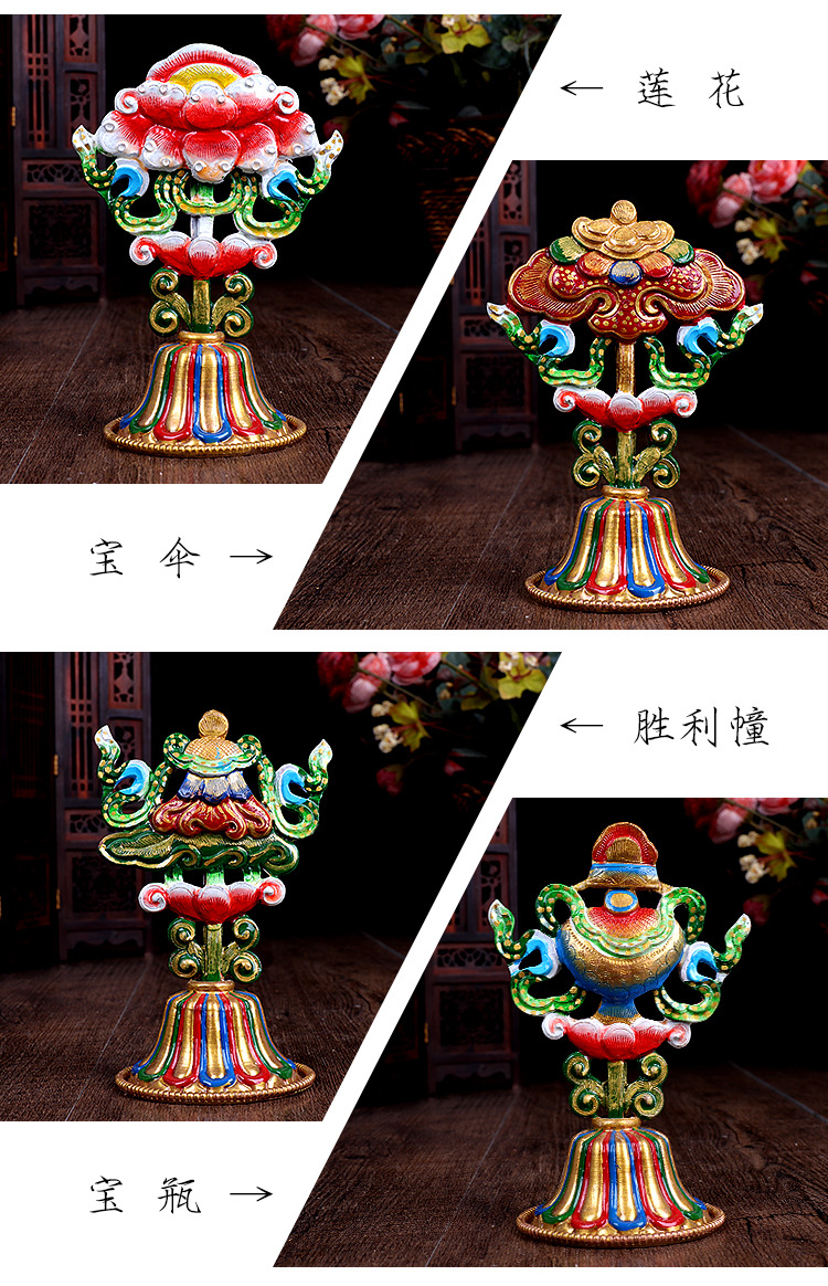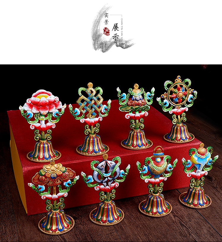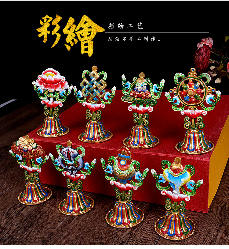 Медные восемь благоприятных украшений с золотым покрытием, тибетские биографические принадлежности, медные окрашенные восемь сокровищ, украшения для зала Будды, высота 12 см