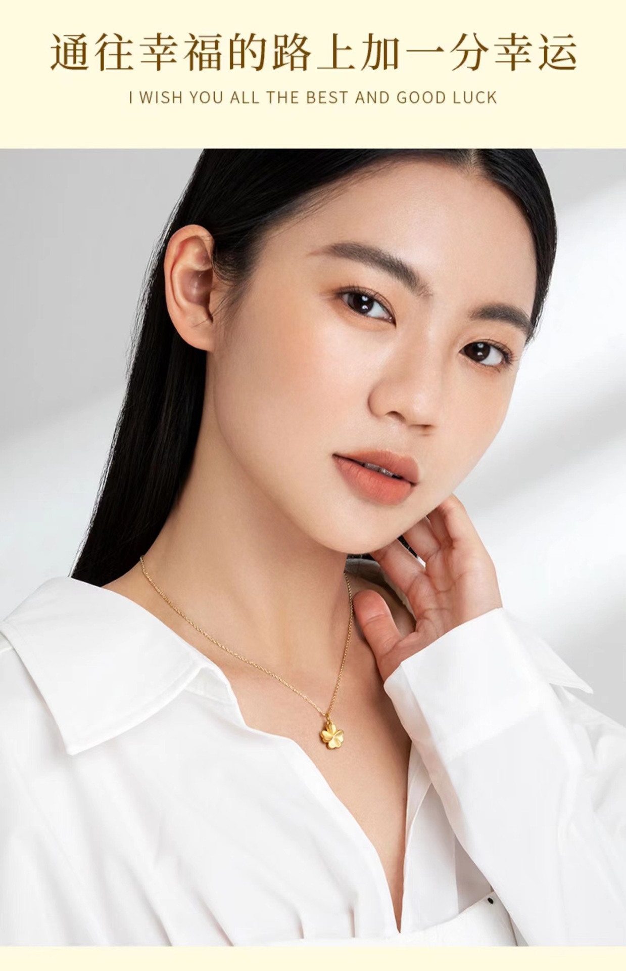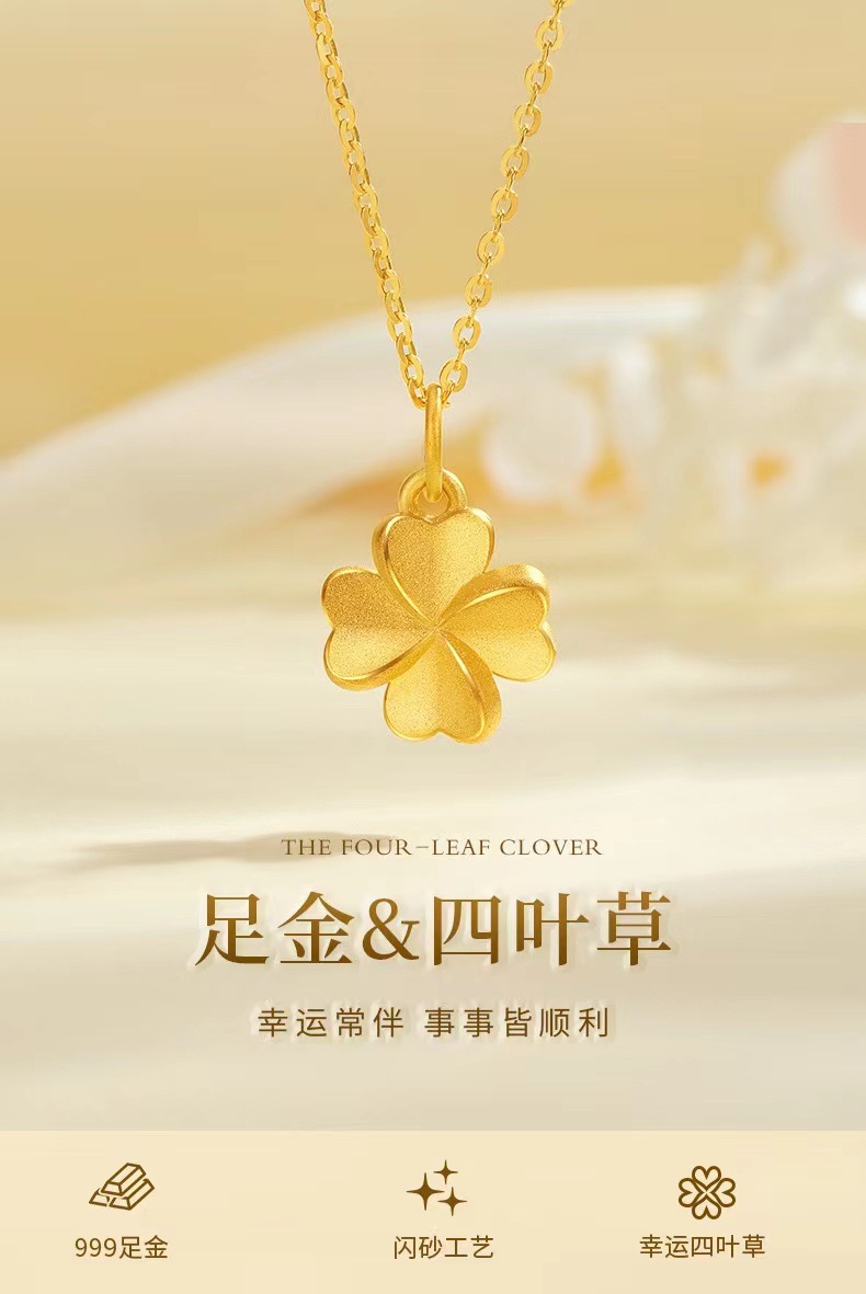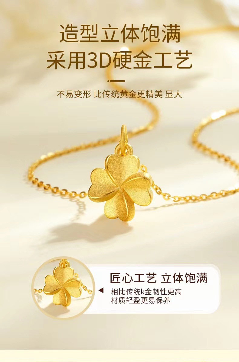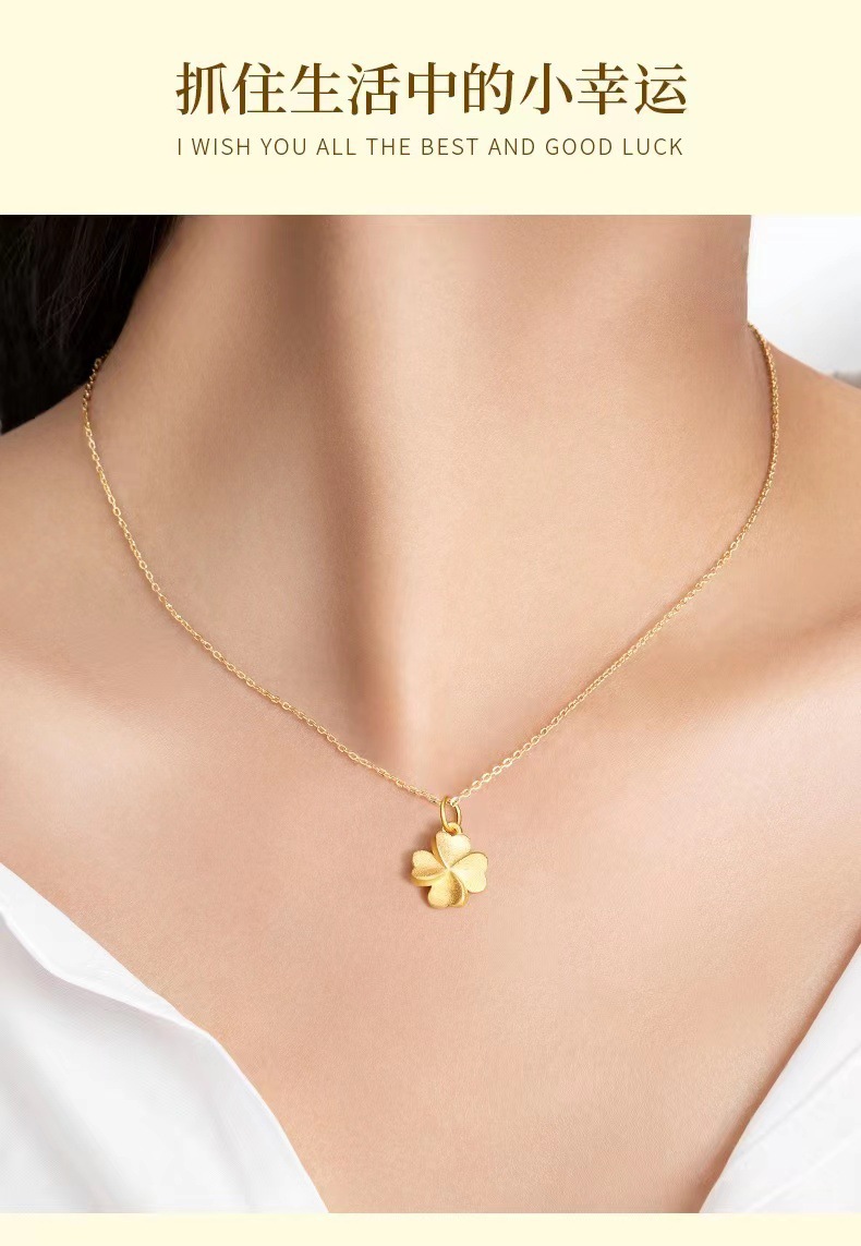 Золотой кулон с четырьмя листьями 999 пробы, 3D жесткое золото, легкая роскошь, простой элегантный джокер, оптовая продажа цепочки