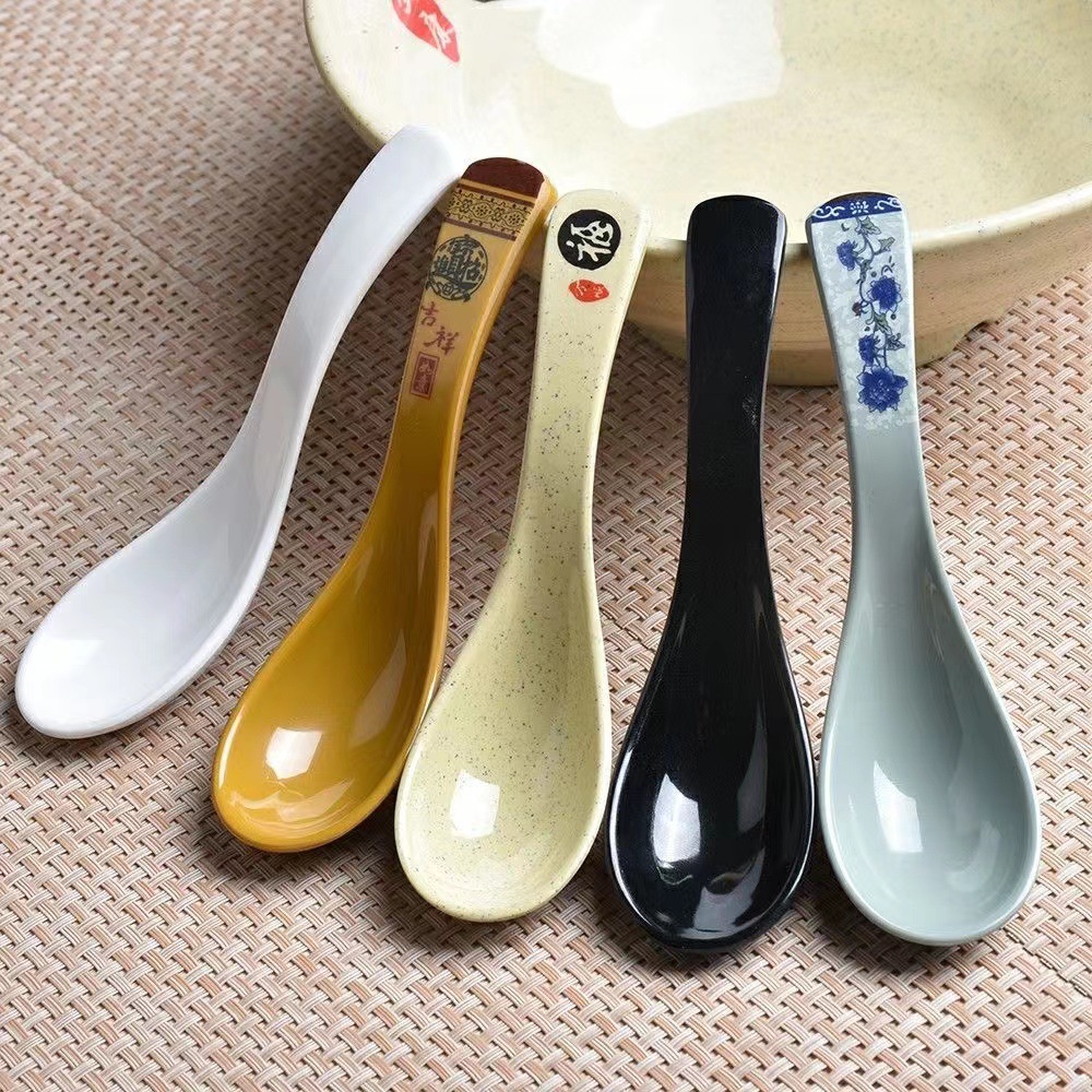 Маленькая меламиновая ложка, имитация фарфора, толстая, термостойкая, антискользящая, пластиковая, для напитков, отельная, цветная, столовая
