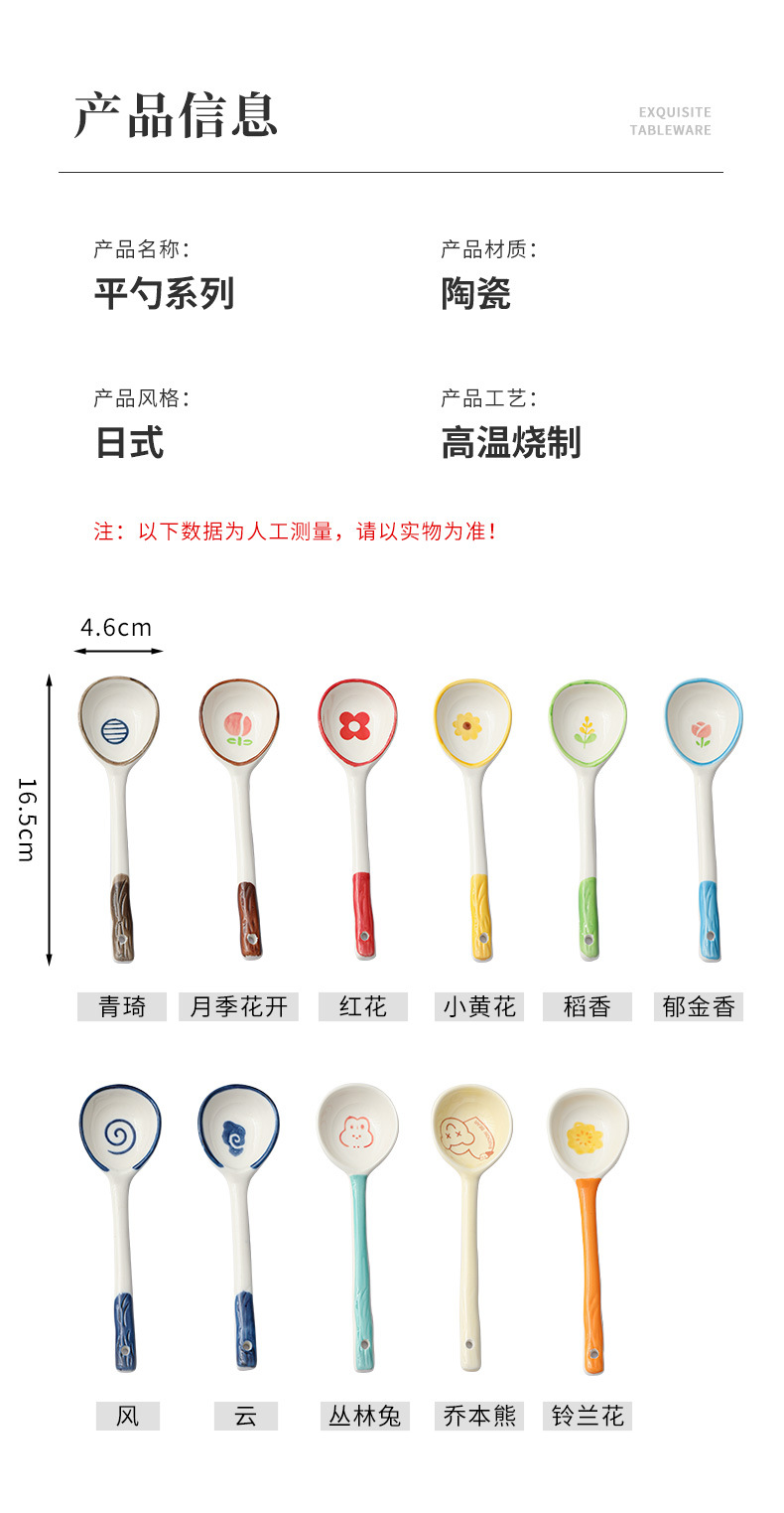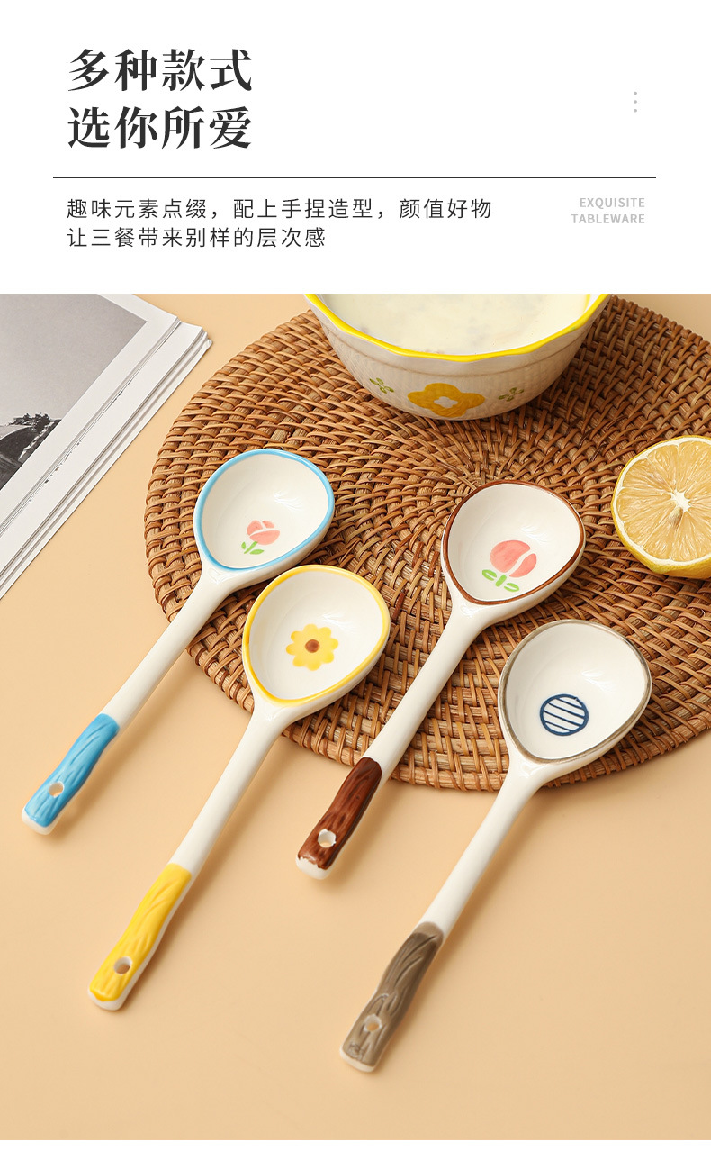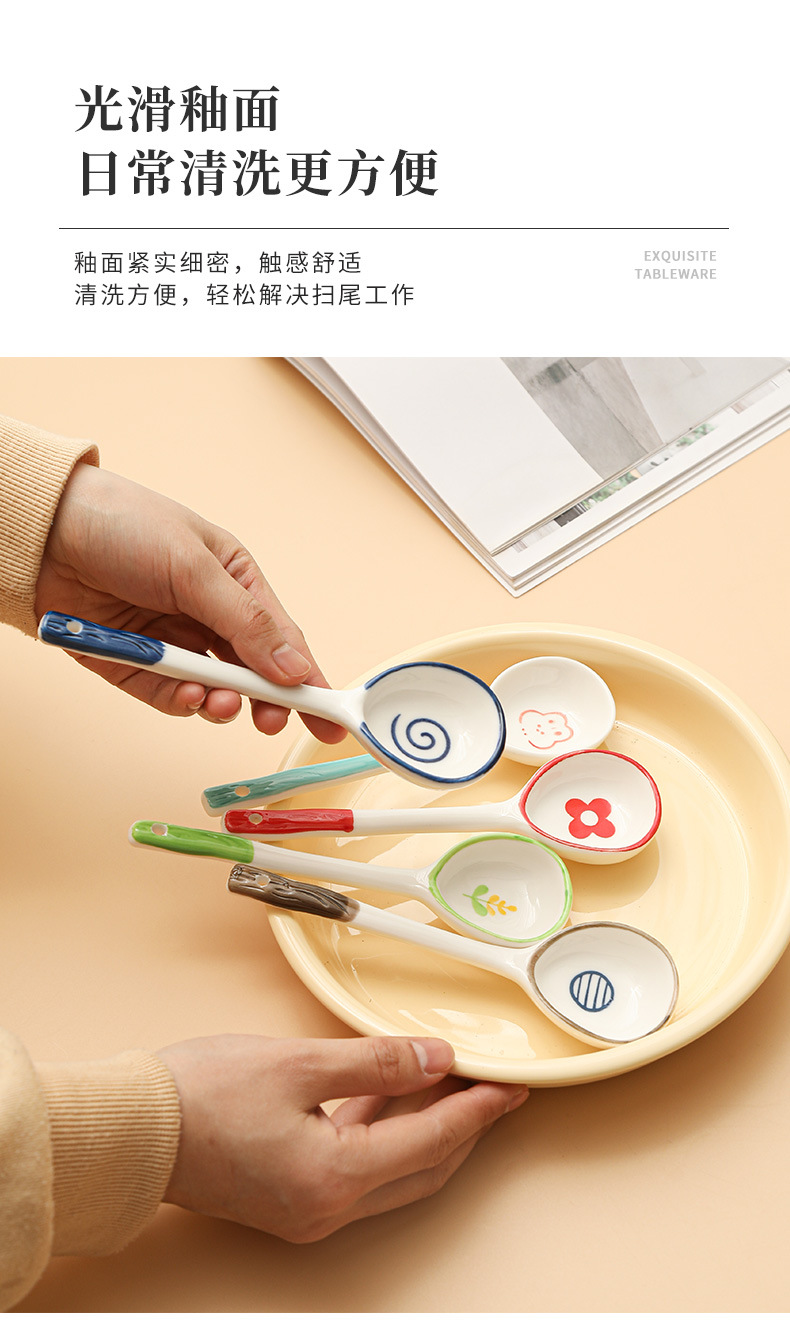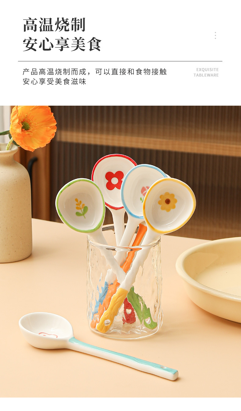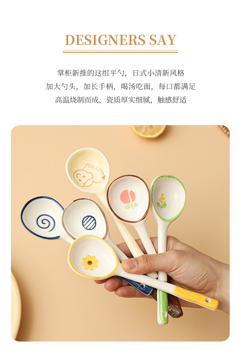 Милая керамическая ложка с длинной ручкой, детская десертная ложка, мультяшная ложка