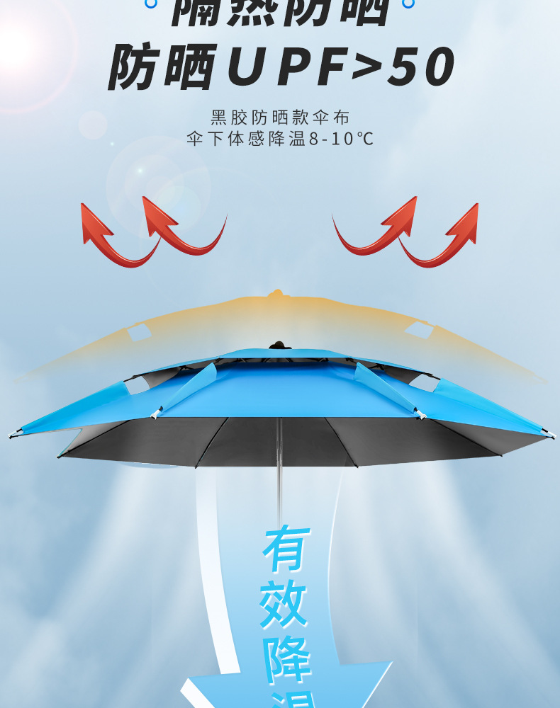 Универсальный рыболовный зонт 2.4 м двойного слоя черного клея из нержавеющей стали, дождевик и солнцезащитный зонт, уличный зонт, утолщенный зонт