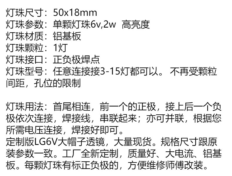 Светодиодные лампы LG Lens TV, световая полоса, один светодиод, DRT 3.0, алюминиевый субстрат, положительная и отрицательная точка пайки, 6V2W, 50x18