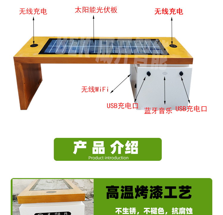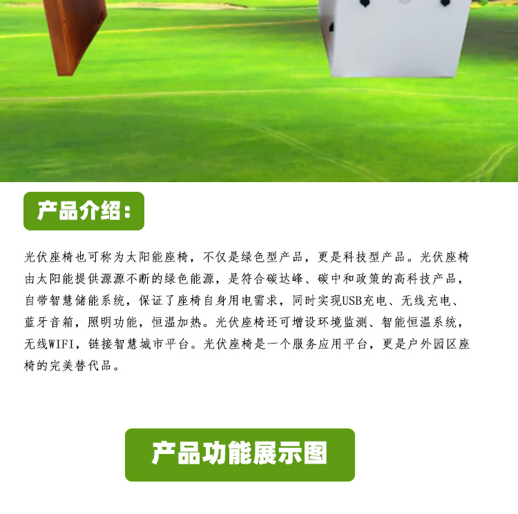 Солнечное фотогальваническое сиденье, умное сиденье в парке, беспроводная зарядка, уличное умное сиденье