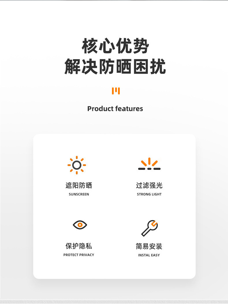 特点:10颗强磁,滑动顺畅,不会吸在一起。钛银涂层均匀,遮光性能很好,保护隐私。