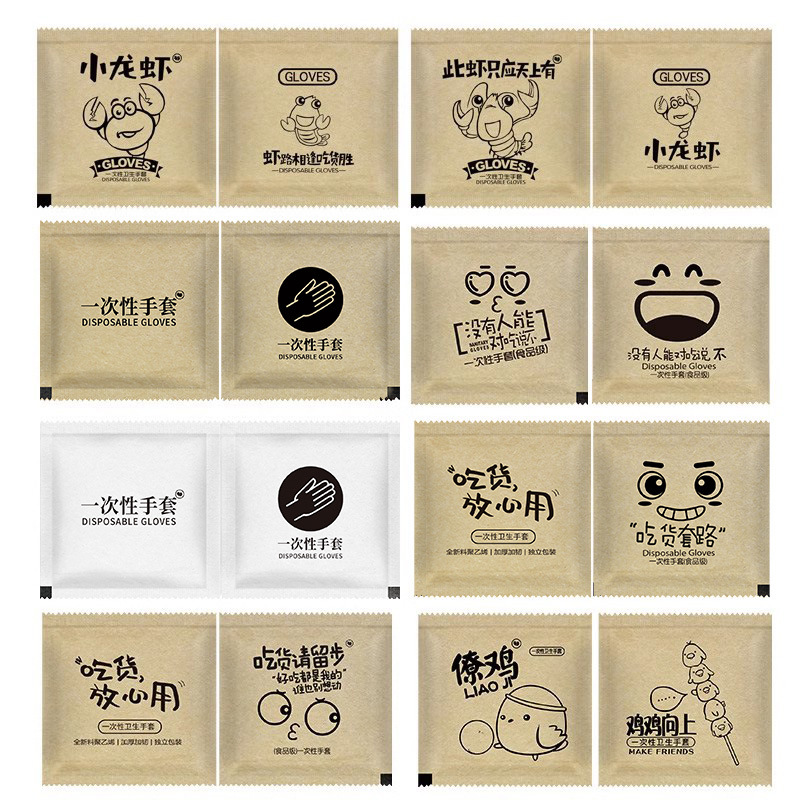 Одноразовые перчатки, индивидуальный креативный дизайн, логотип, независимая маленькая упаковка, для кейтеринга, жареной курицы, пищевые, PE перчатки