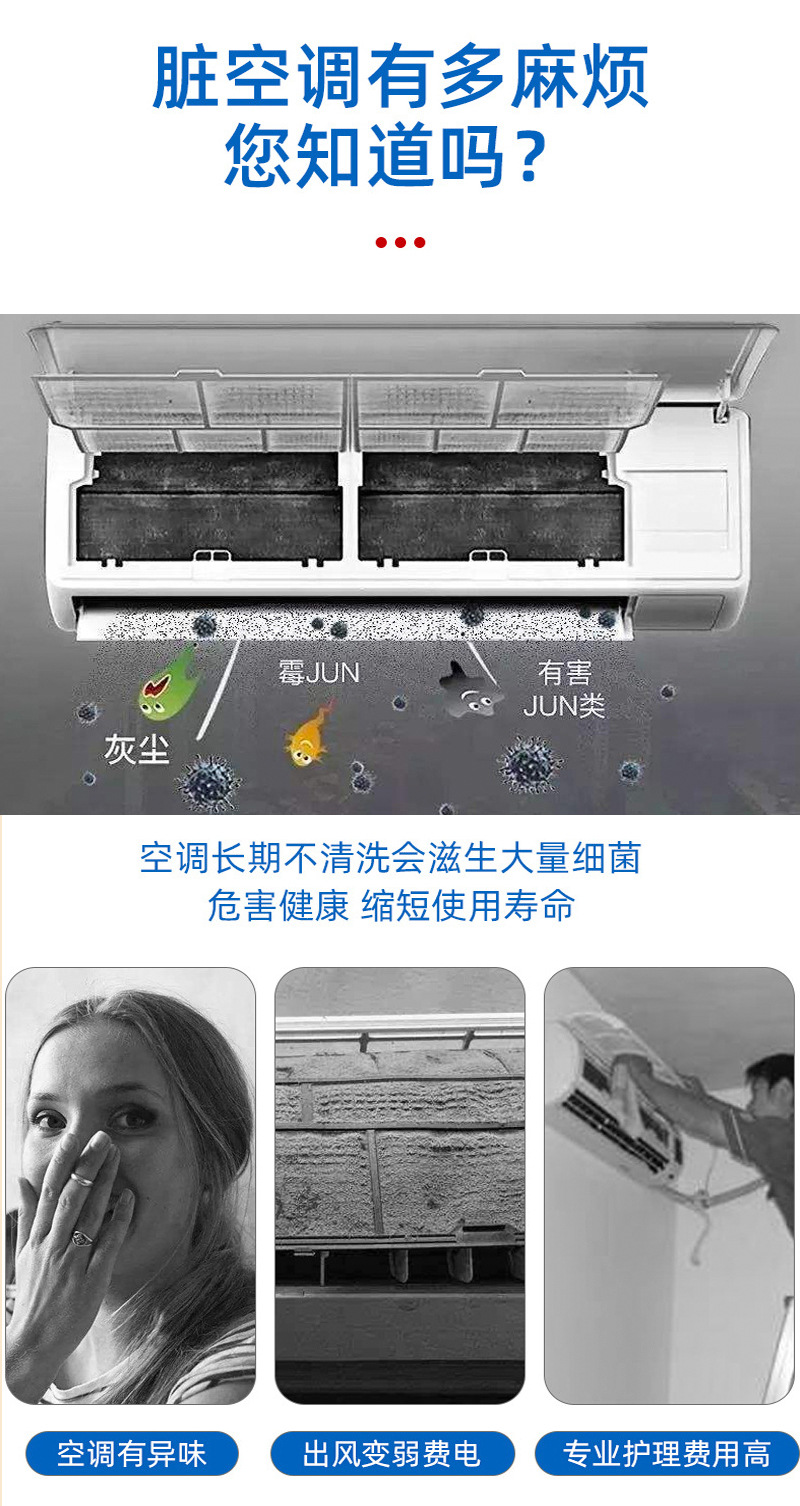 Очиститель для кондиционеров, без разбора, без воды, пенный дезинфицирующий и дезодорирующий агент для воздуховодов