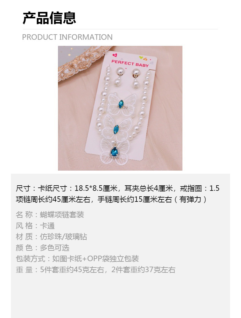 Набор детских украшений: ожерелье и браслет с бабочкой, имитация жемчуга для выступлений