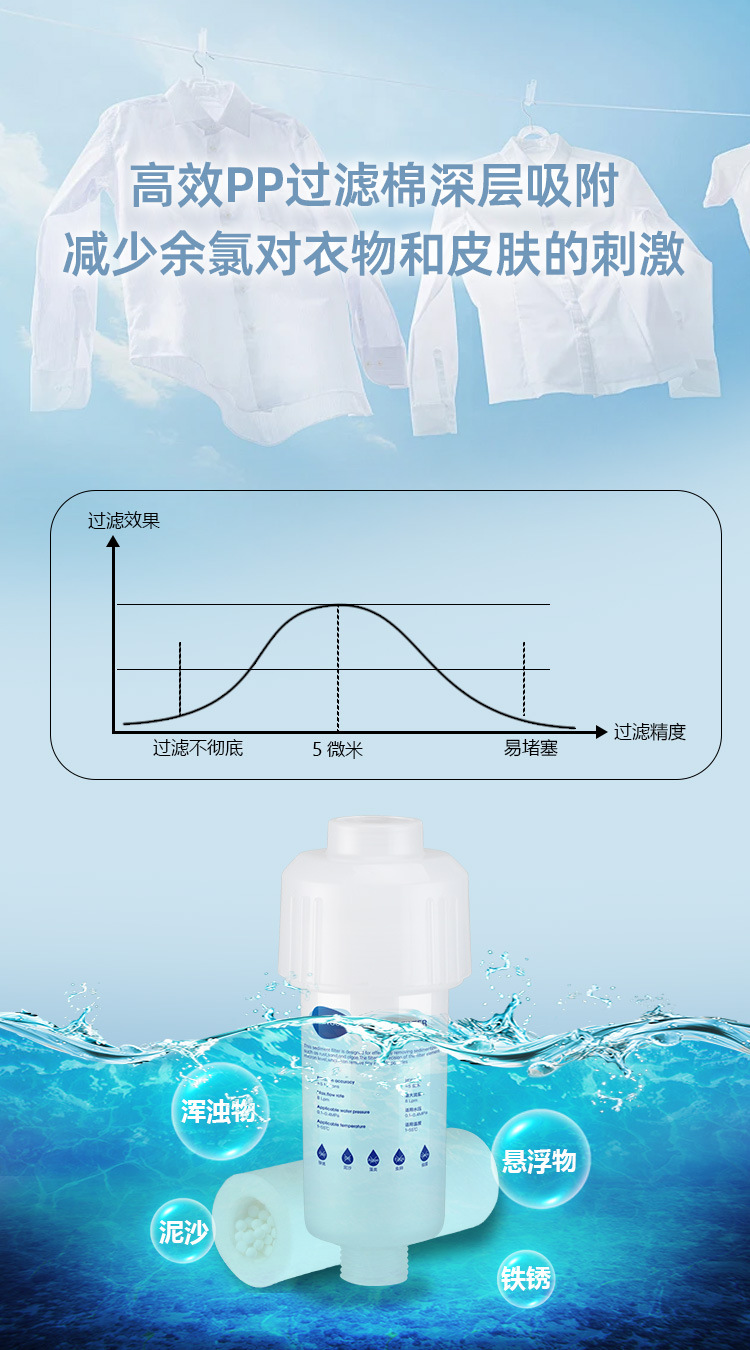 Water purification effect Remove scale, Remove chlorine, Remove heavy metals, Remove rust, Remove sediment, Remove organic matter