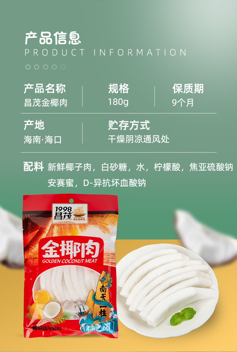 Сырьё и ингредиенты New coconut meat, white sugar, water, citric acid, sodium metabisulfite, acesulfame, D-