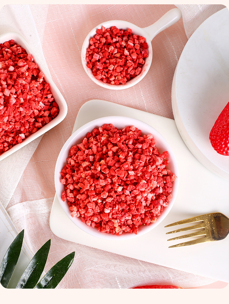 Лиофилизированная клубника зерновая сломанная FD клубника Дин молочный чай заменитель фруктового чая твердый напиток с клубничными кусочками 1-5мм
