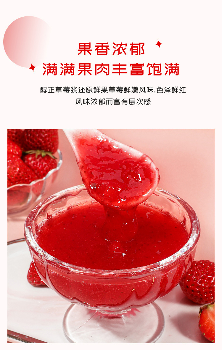 Клубничное варенье 1.2кг для молочного чая с кусочками пюре, фруктового чая, мороженого, порошка для выпечки