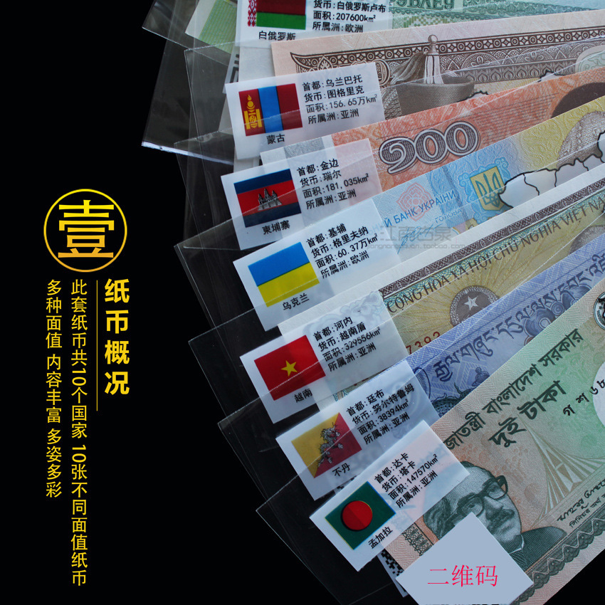 外国钱币外币纸钞真币压岁包收藏全新十国纸币 一套10张国外钱币