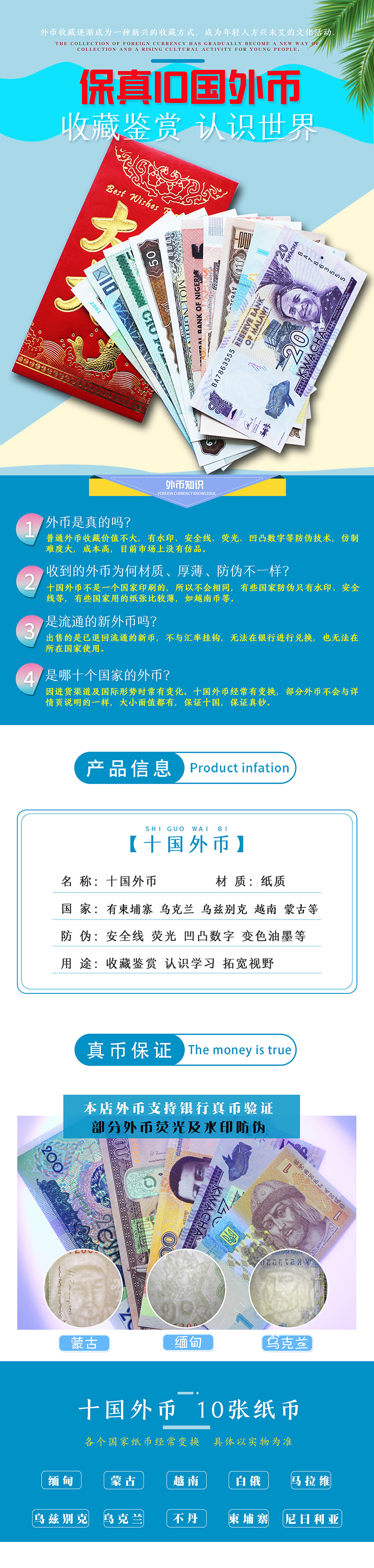 Новые банкноты из десяти иностранных стран, набор из 10 иностранных монет, коллекция реальных иностранных валют, бесплатная доставка