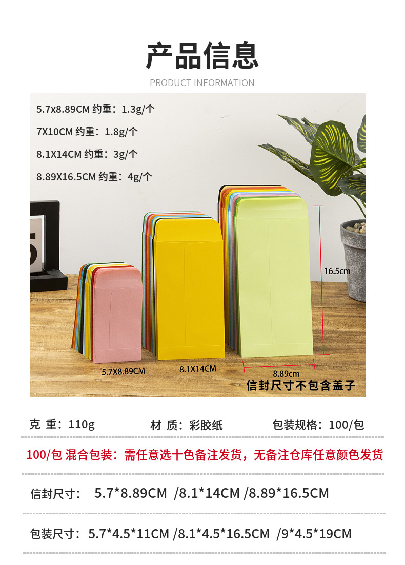 📦 | 8.89X16.5CM | Combination color (10 pictures per color, 100 pictures/pack), multiples of 100 | ¥0.11 / ≈ 1 ₽ | 905892 | 5939317402640 |