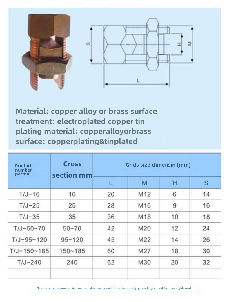 - Versatile Usage:This TJ copper bolt clamp is ideal for wiring/cabling tasks, making it a must-have tool for electricians and construction workers.