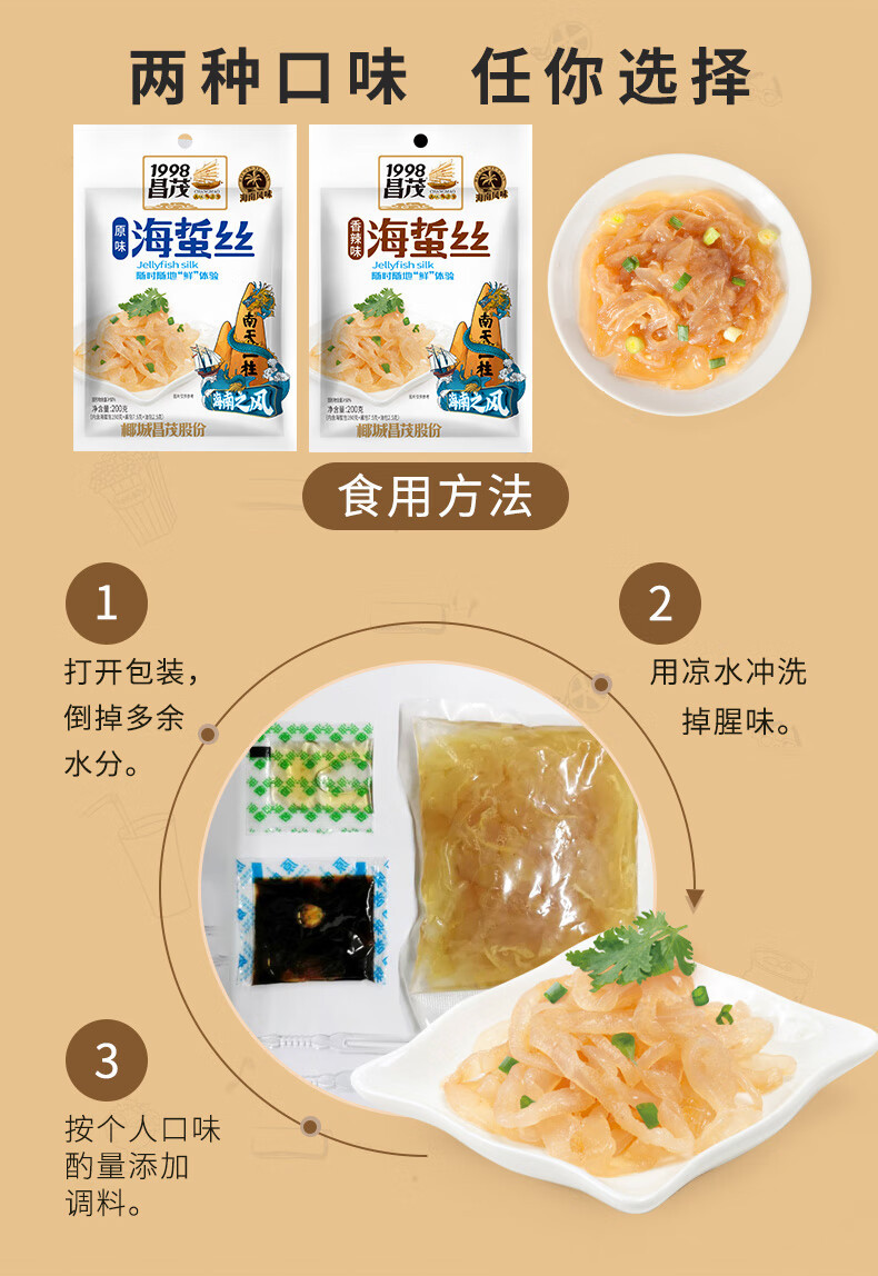 Чанмао Хайнань медуза нарезка 200г, холодная, освежающая, свежая и хрустящая, готова к употреблению с рисом и вином, включая упаковку с приправами