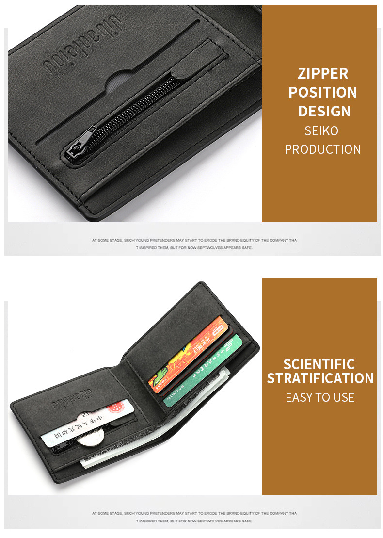2023 Новый кошелек Мужской натуральная кожа Короткий молния Повседневный мягкий тонкий кошелек Ретро кошелек Студенческий