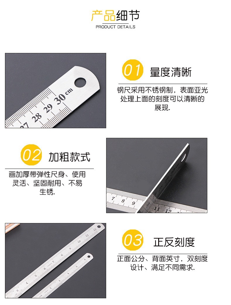 Нержавеющая стальная линейка, канцелярские принадлежности для офиса и студентов, утолщенная металлическая двусторонняя стальная линейка, оптовая продажа