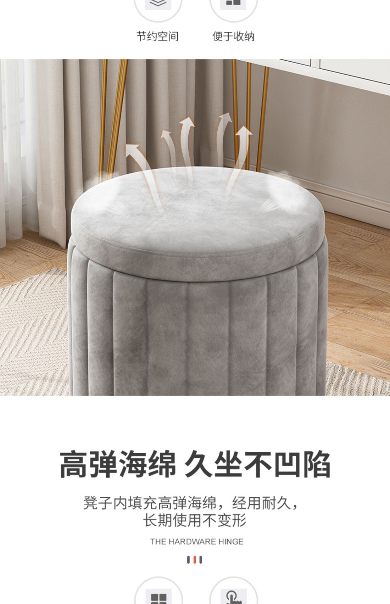 Кресло-стул для макияжа, легкая роскошь, круглый стул, популярный стул для хранения, диванный стул, стул для туалетного столика, маленький размер
