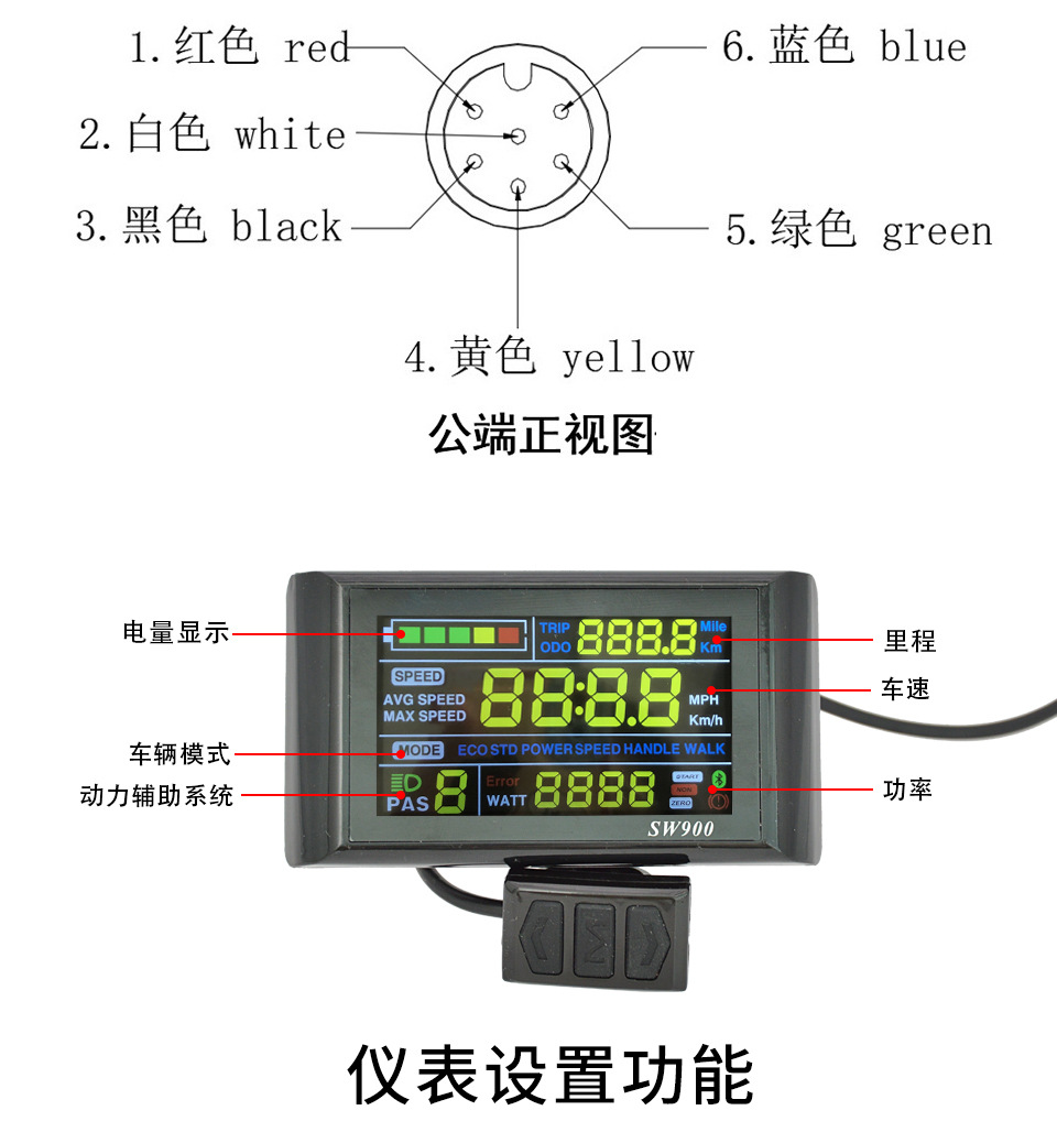 6-ядерный Sw900 цветной экран ум仪电ный инструмент для электровелосипеда горного велосипеда влагозащищенные части модификации