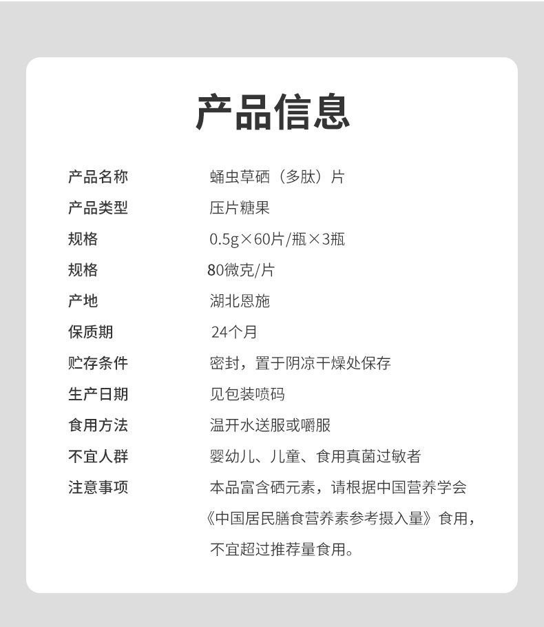 Шичжоу Энши Кордицепс Милитарис Селен Пептидные таблетки Плоские селеновые таблетки Конфеты 0.5г*60 таблеток*3 бутылки 80 микрограммов