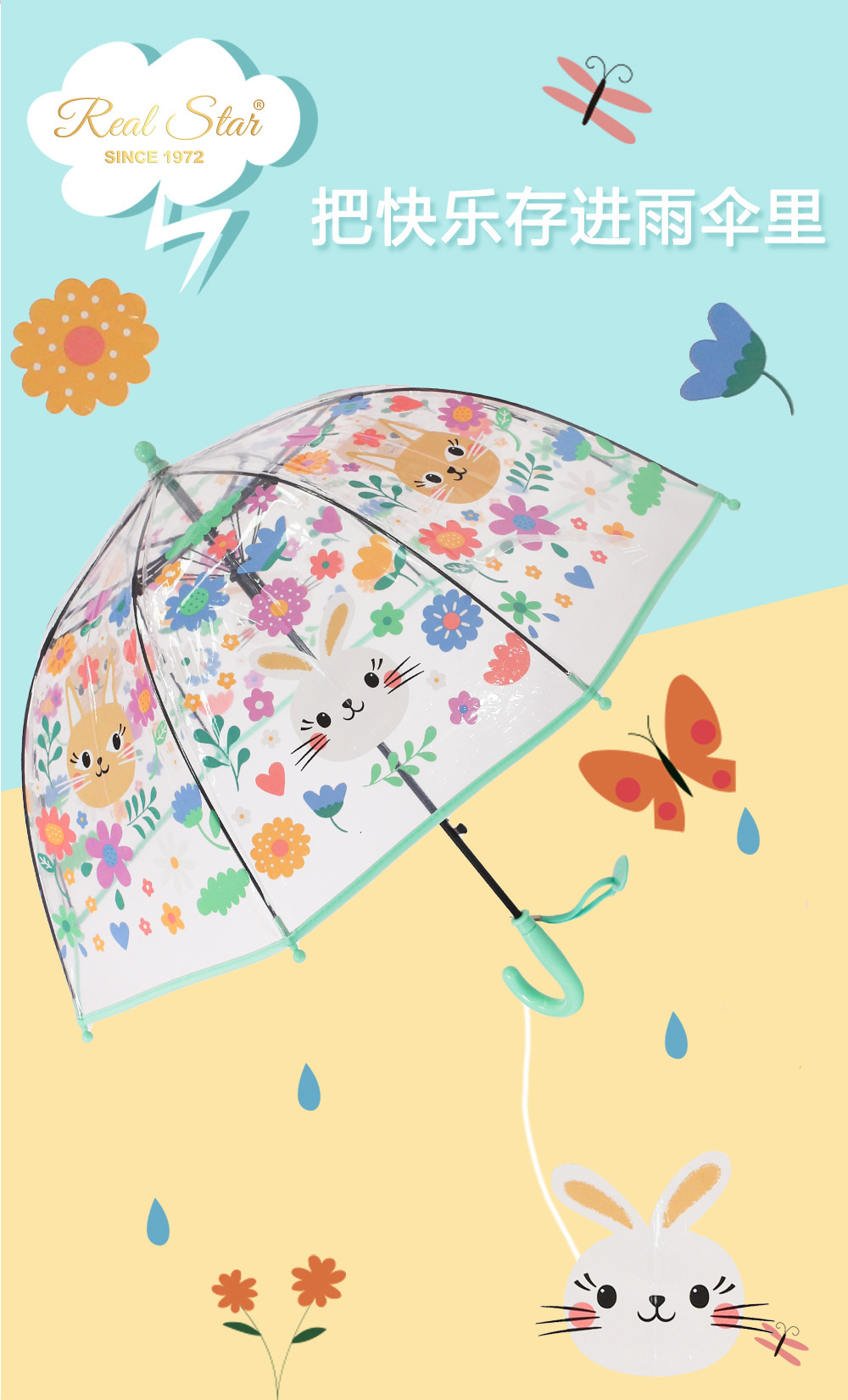 Новый продукт: прозрачный зонт для детей с милыми котами и кроликами, цветной зонт с мультяшными цветами, полный принт, готов к продаже
