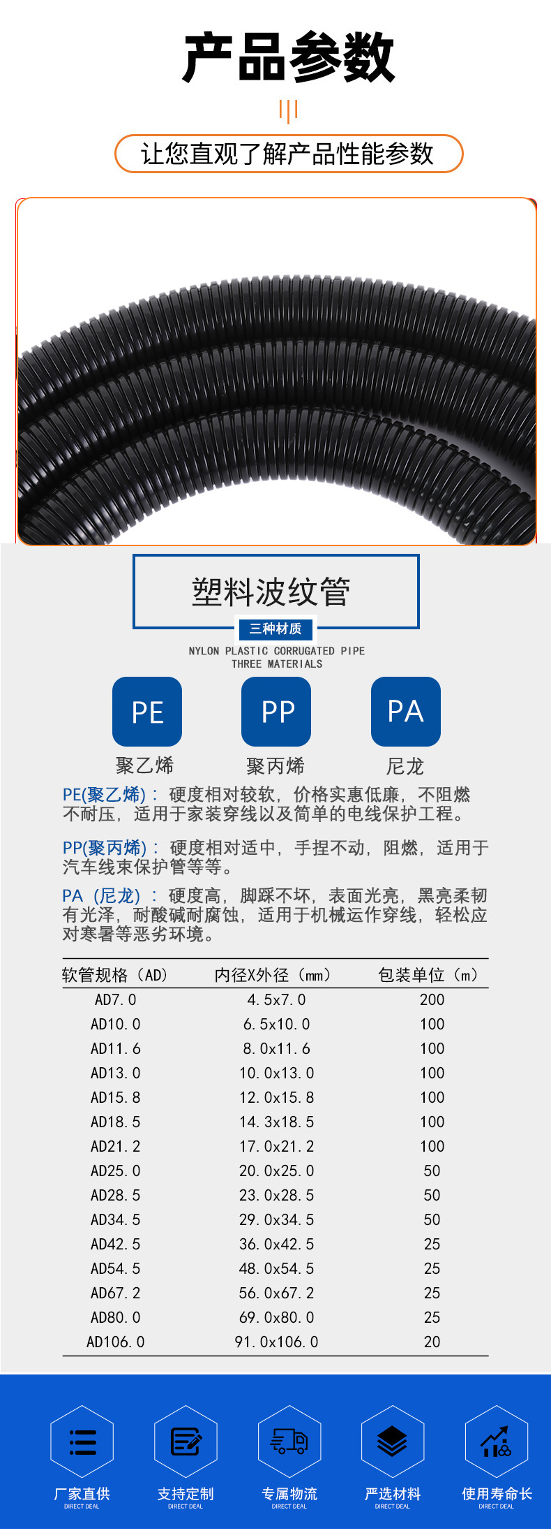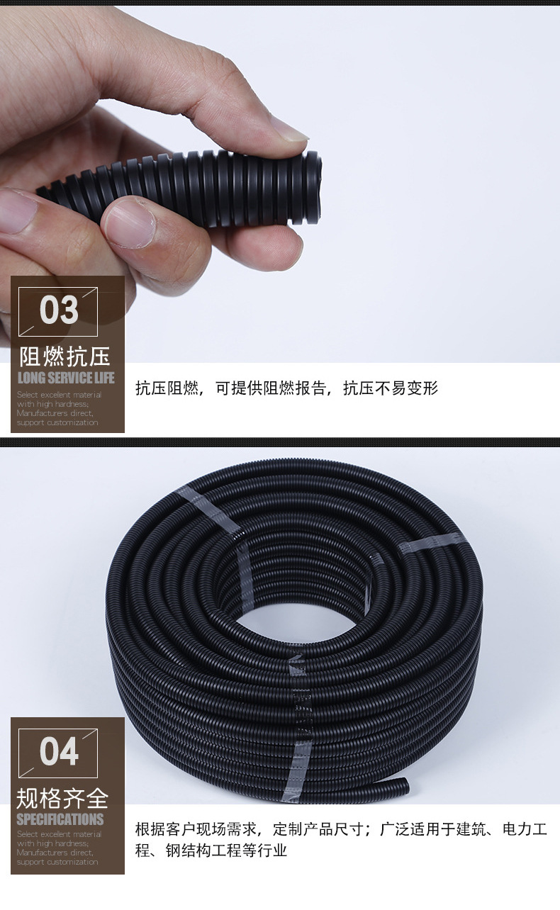 Гофрированная трубка из ПЭ, оболочка для кабелей, трубка для протяжки проводов, защитная трубка для высоковольтных проводов, оптовая продажа