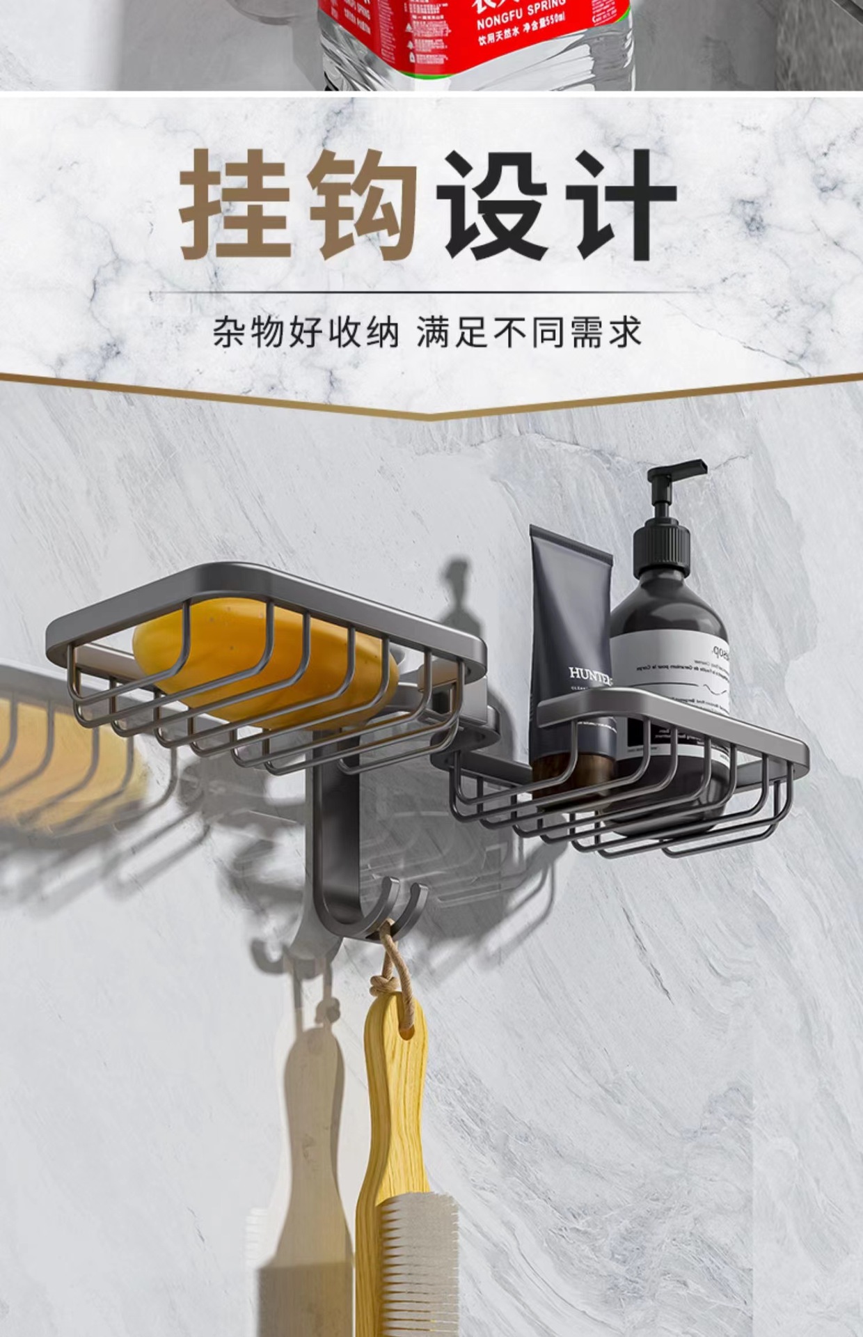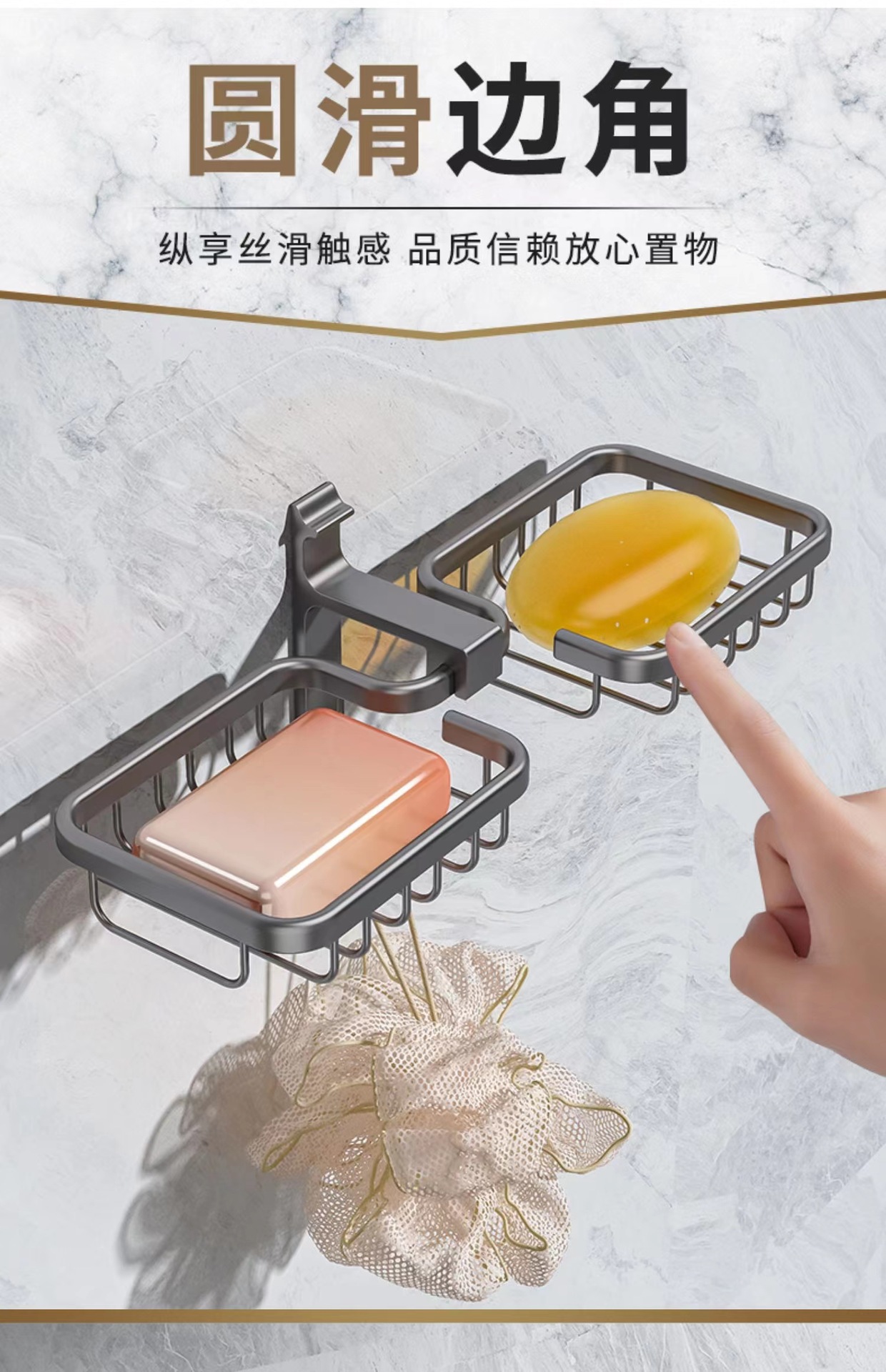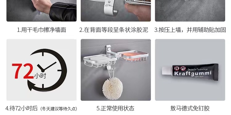 (1)、此款为肥皂盒,可以打孔/免打孔双用安装。