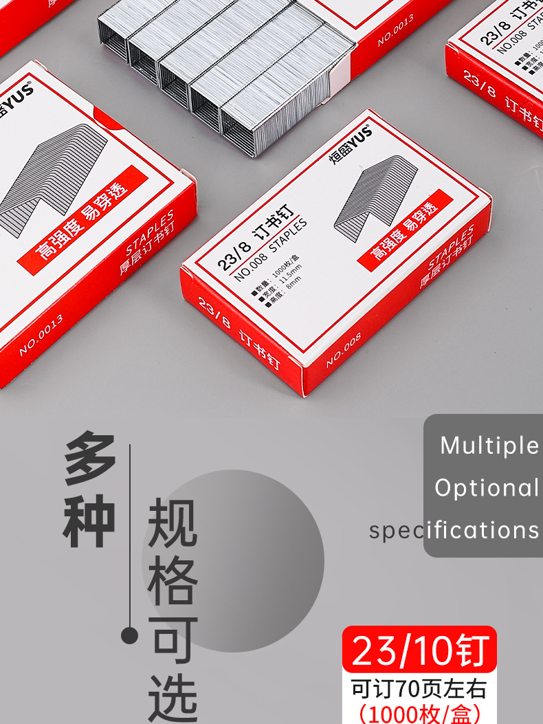 订书针型号比较多,您遇到不知道哪个型号的适用,可以联系客服帮您看看哈,订书针消耗品用量比较大有时候包装盒子来不及送来,图片来不及更换,用的其他盒子装的,订书针型号质量都一样的,介意盒子慎拍哈,量大也可以定制。