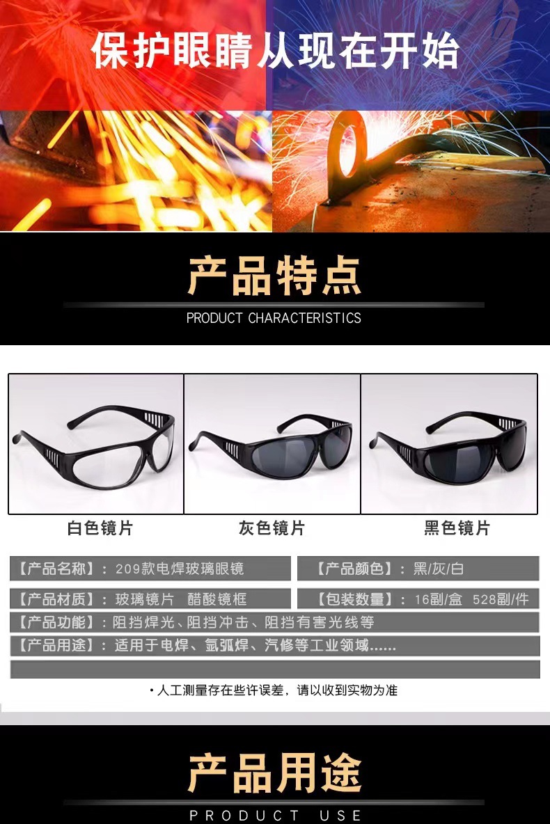 Очки для сварки 209, газозащитные, аргонодуговая сварка, защитные очки для сварщиков, плоские защитные очки