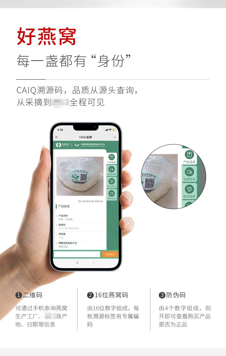 Мгновенное гнездо птицы Caiq, код отслеживания, гнездо птицы, малайзийское индонезийское крупное гнездо птицы, отобранные полоски гнезда птицы сезона дождей, подарочная коробка стандартов предприятия, оптовая продажа