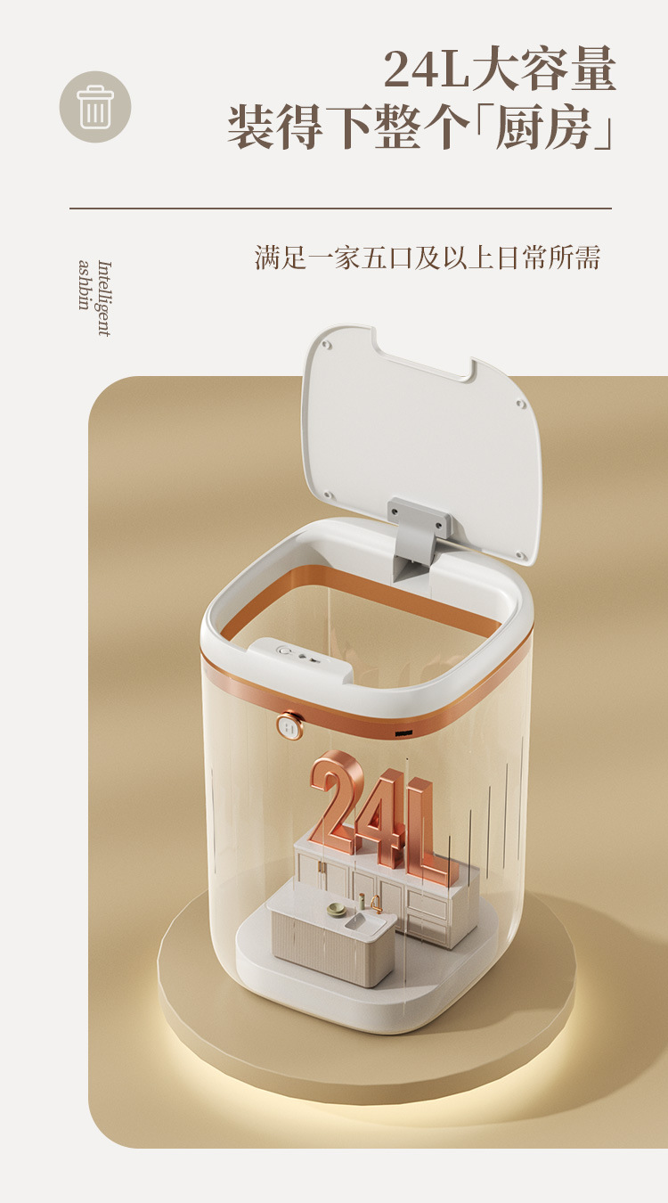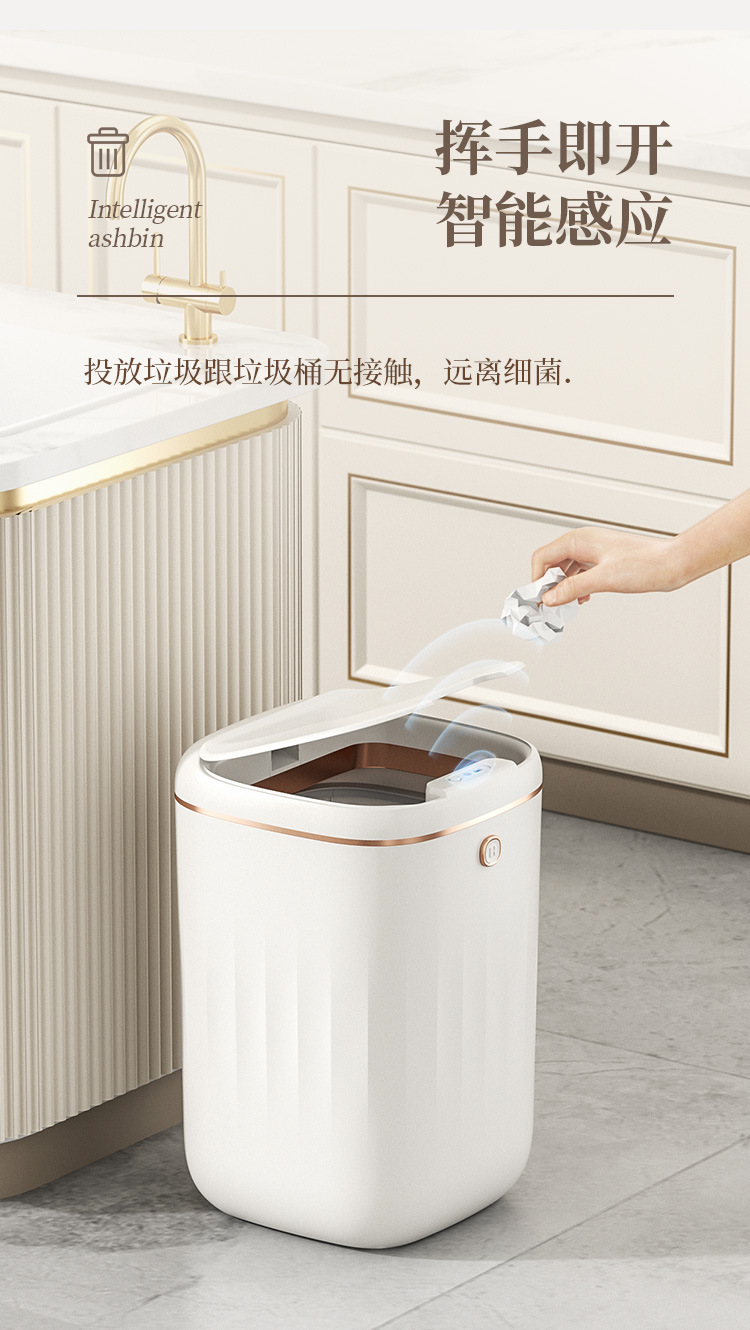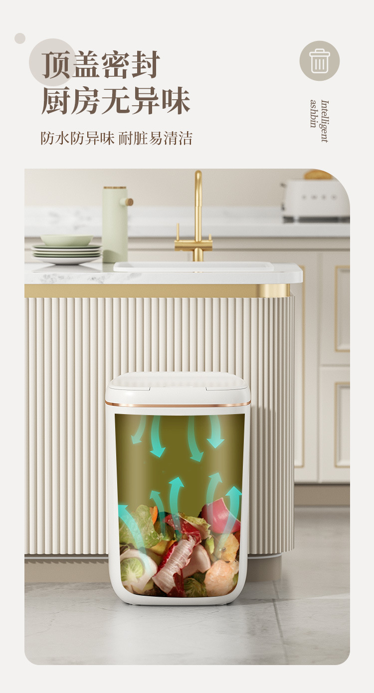 Автоматическая интеллектуальная мусорная корзина с крышкой, водонепроницаемая, для гостиной, кухни, электрическая, 2023, большая