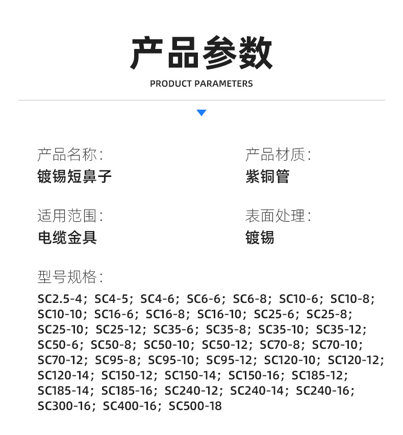 Название продукта Tin-plated short nose SC